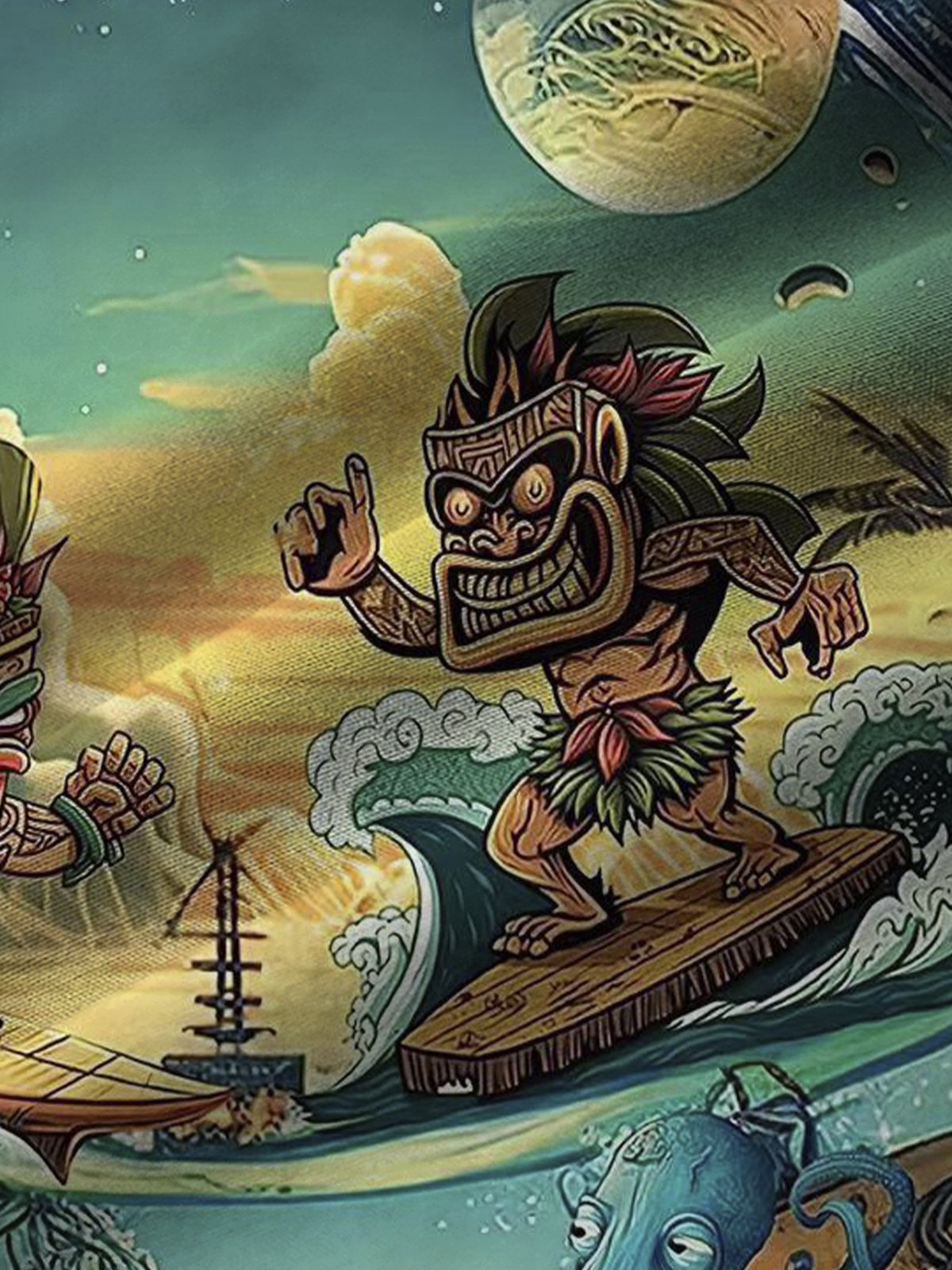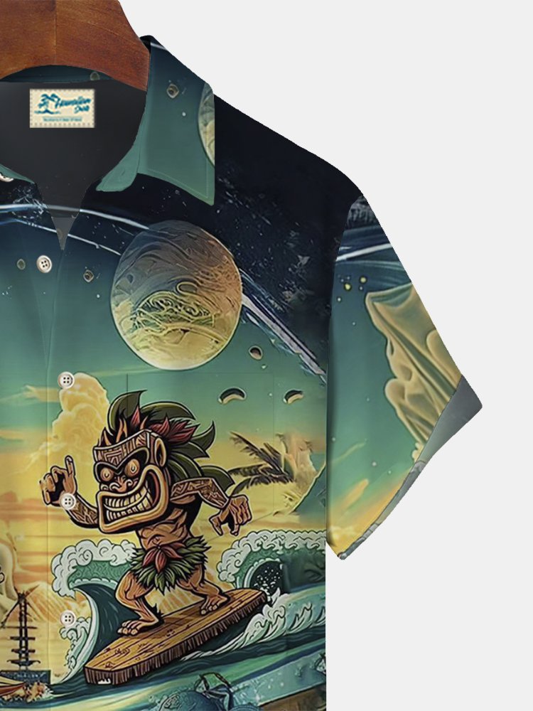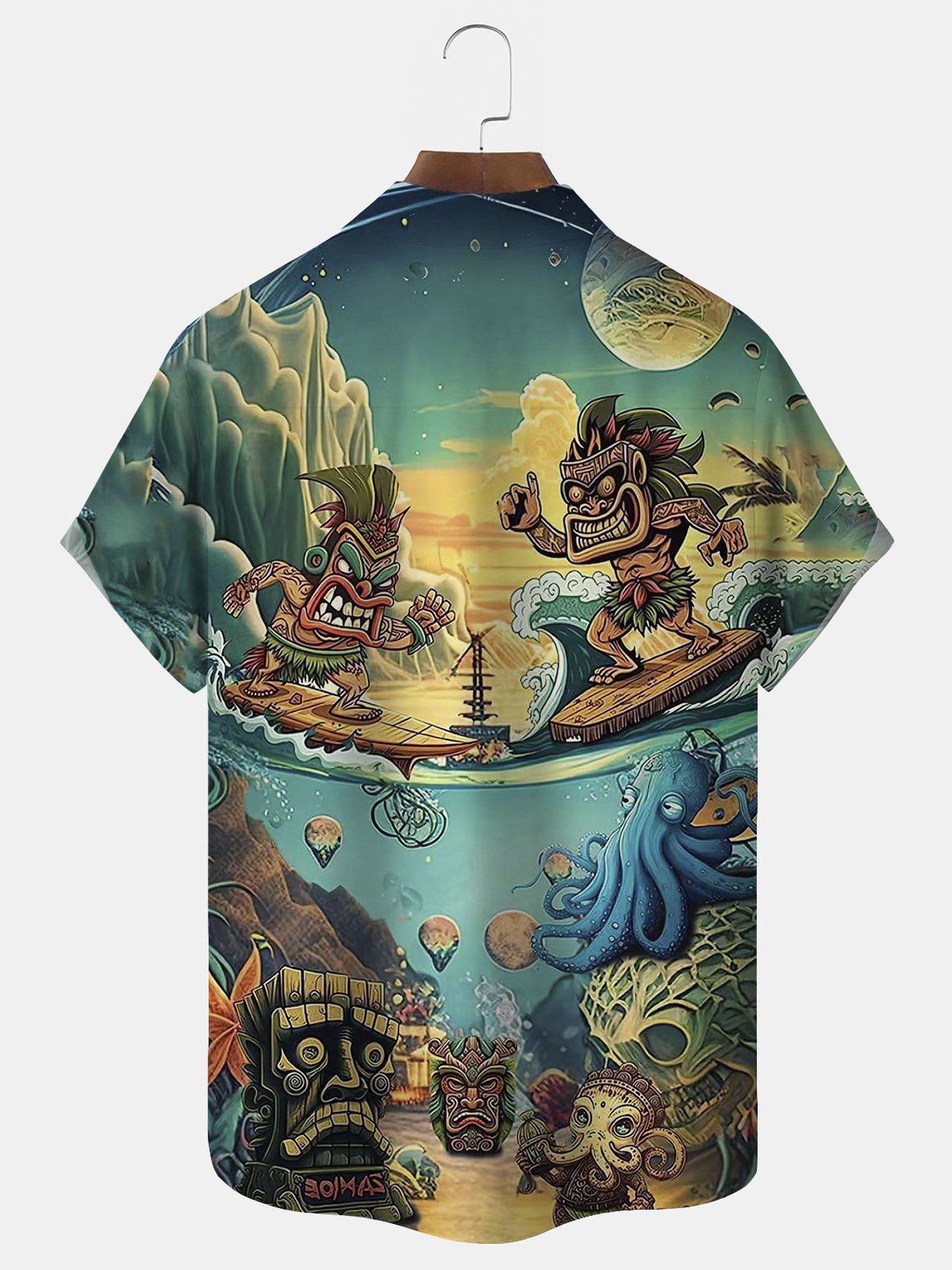 Camisa hawaiana extragrande con bolsillos para hombre con estampado de playa TIKI de Alohadaddy Surf