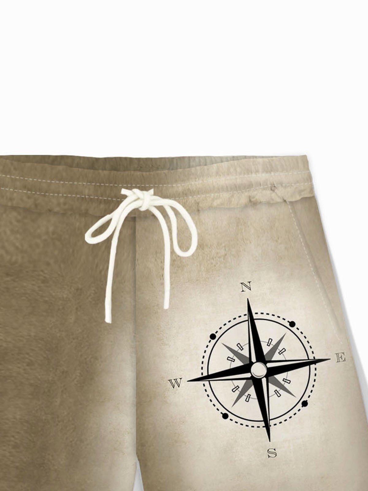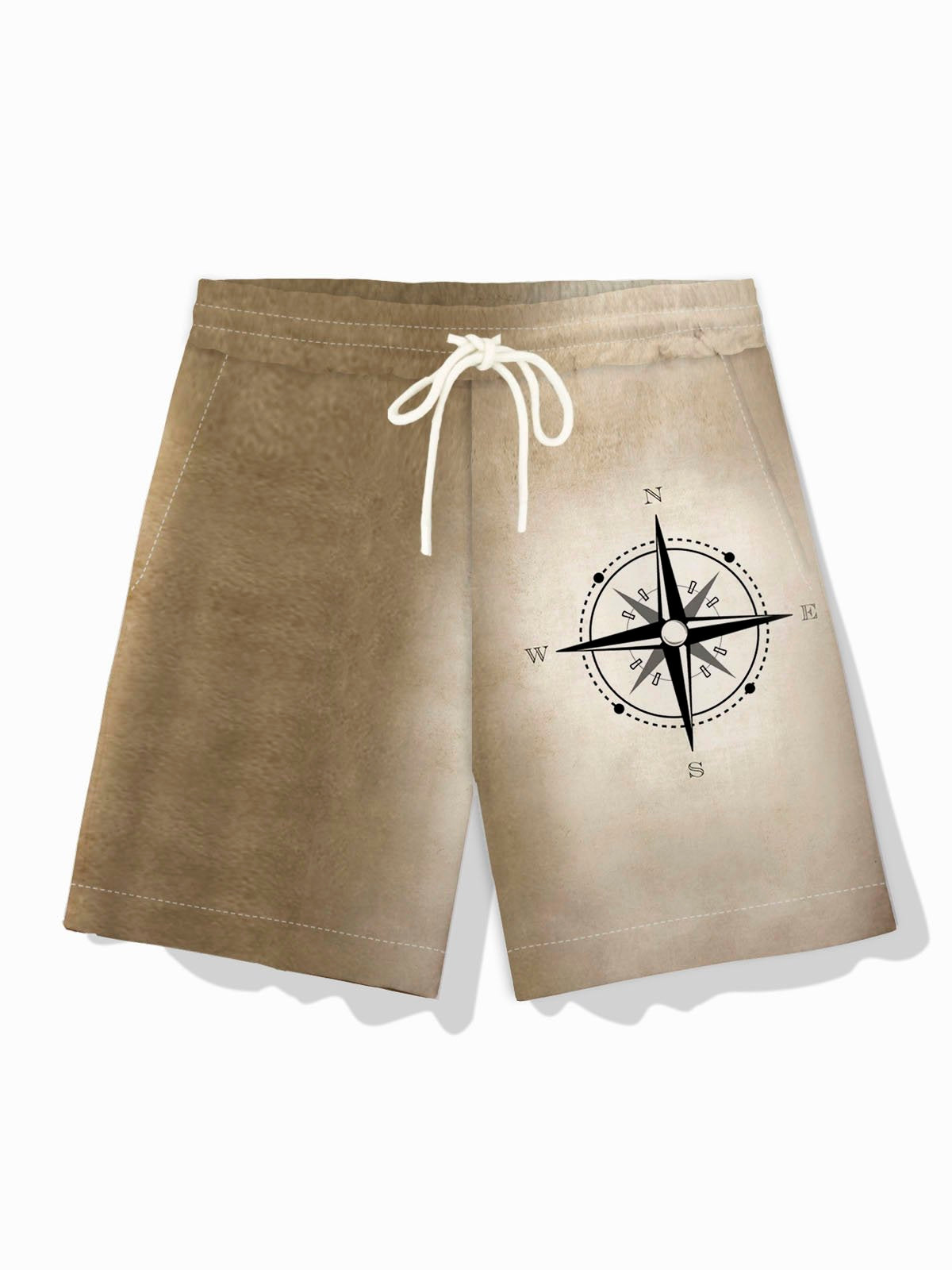 Pantalones cortos de tabla elásticos con cordón y estampado degradado de brújula vintage para hombre de Alohadaddy