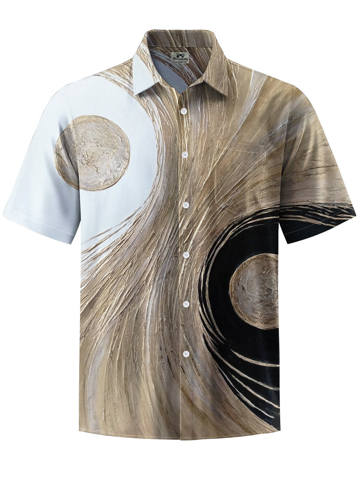 Alohadaddy® Casual Abstract Art Print Chest Pocket Stretch Men's Short Sleeve Shirt Big & Tall