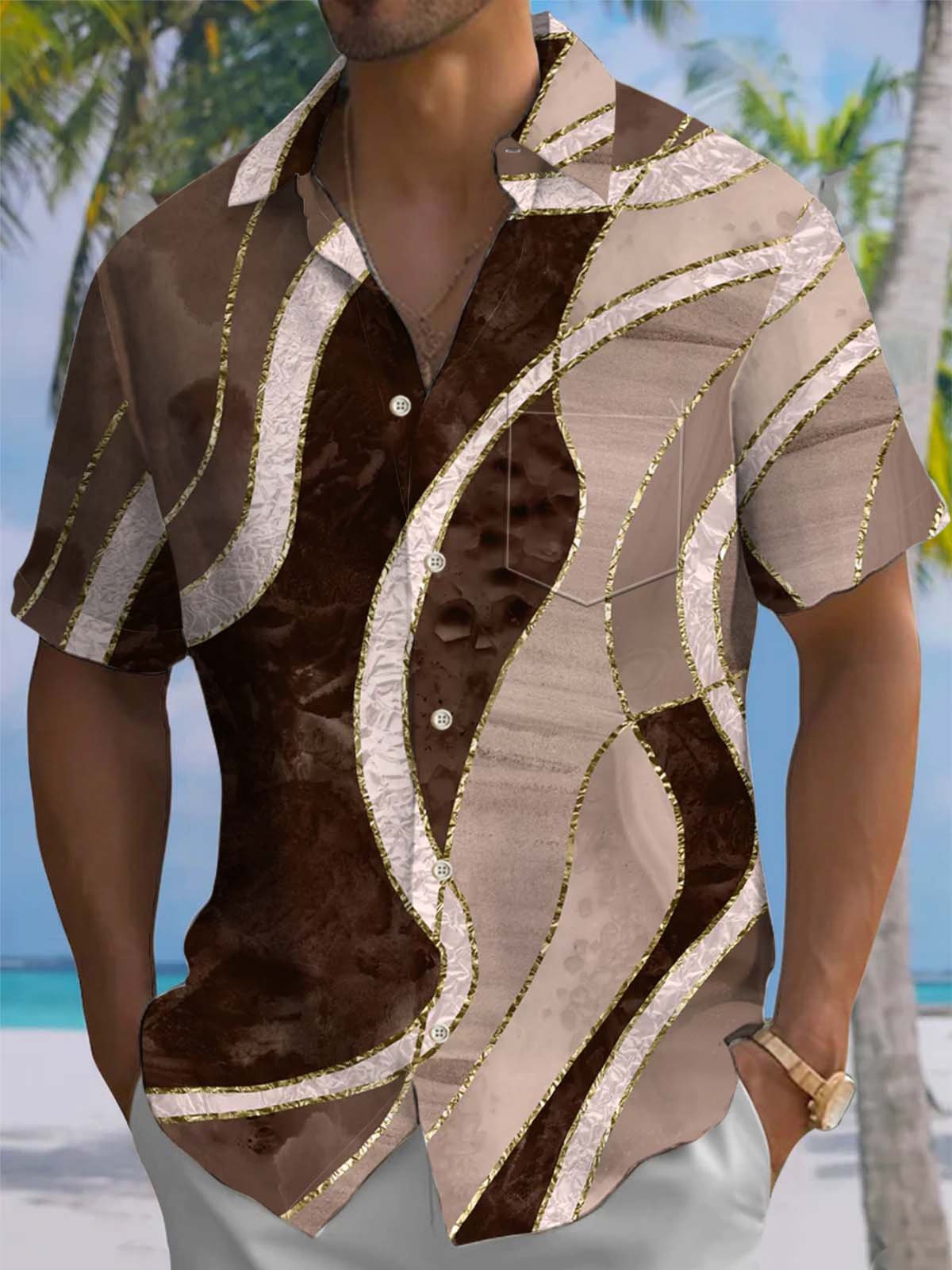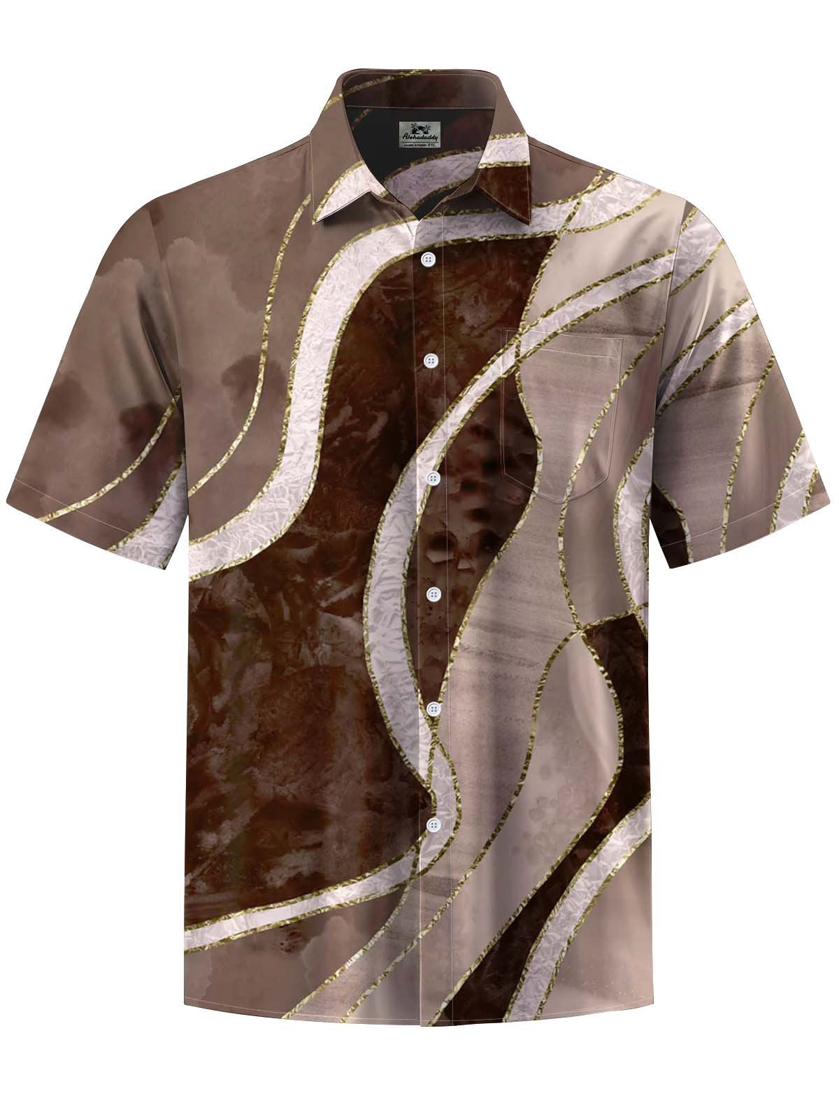 Alohadaddy® Casual Abstract Art Print Chest Pocket Stretch Men's Short Sleeve Shirt Big & Tall