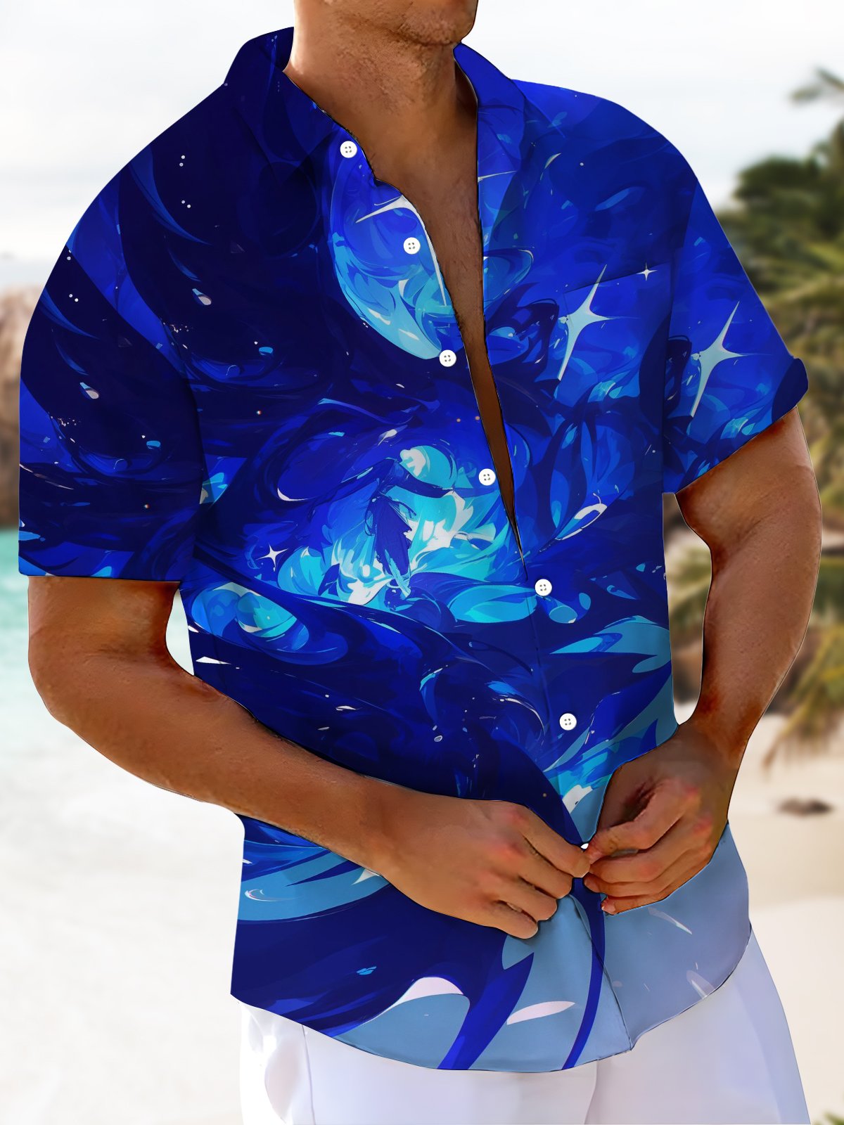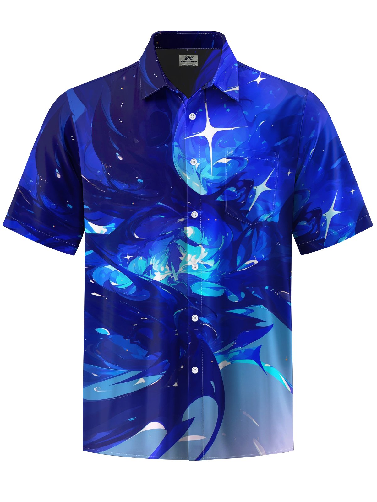 Alohadaddy® Casual Abstract Art Print Chest Pocket Stretch Men's Short Sleeve Shirt Big & Tall