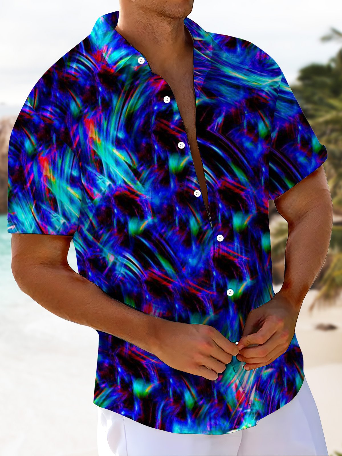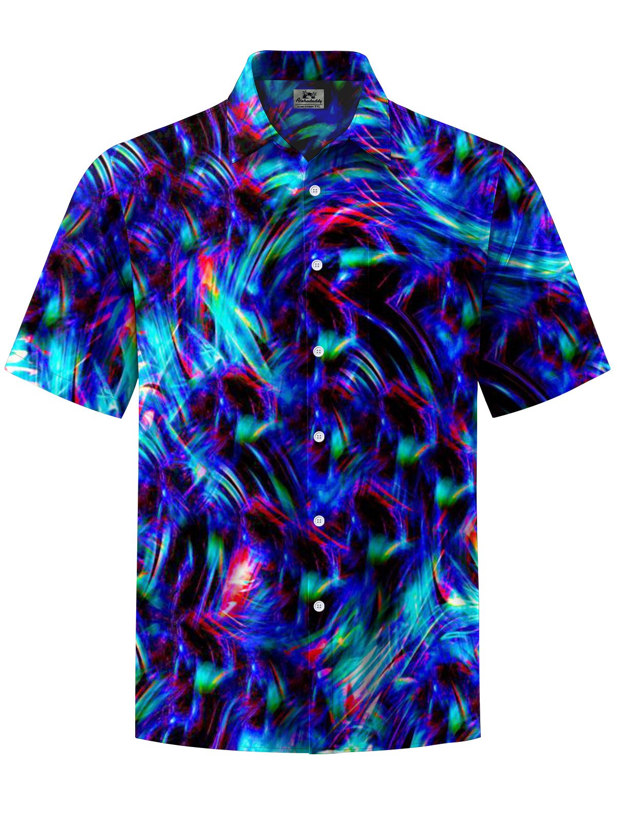 Alohadaddy® Casual Abstract Art Print Pocket Stretch Men's Short Sleeve Shirt Big & Tall