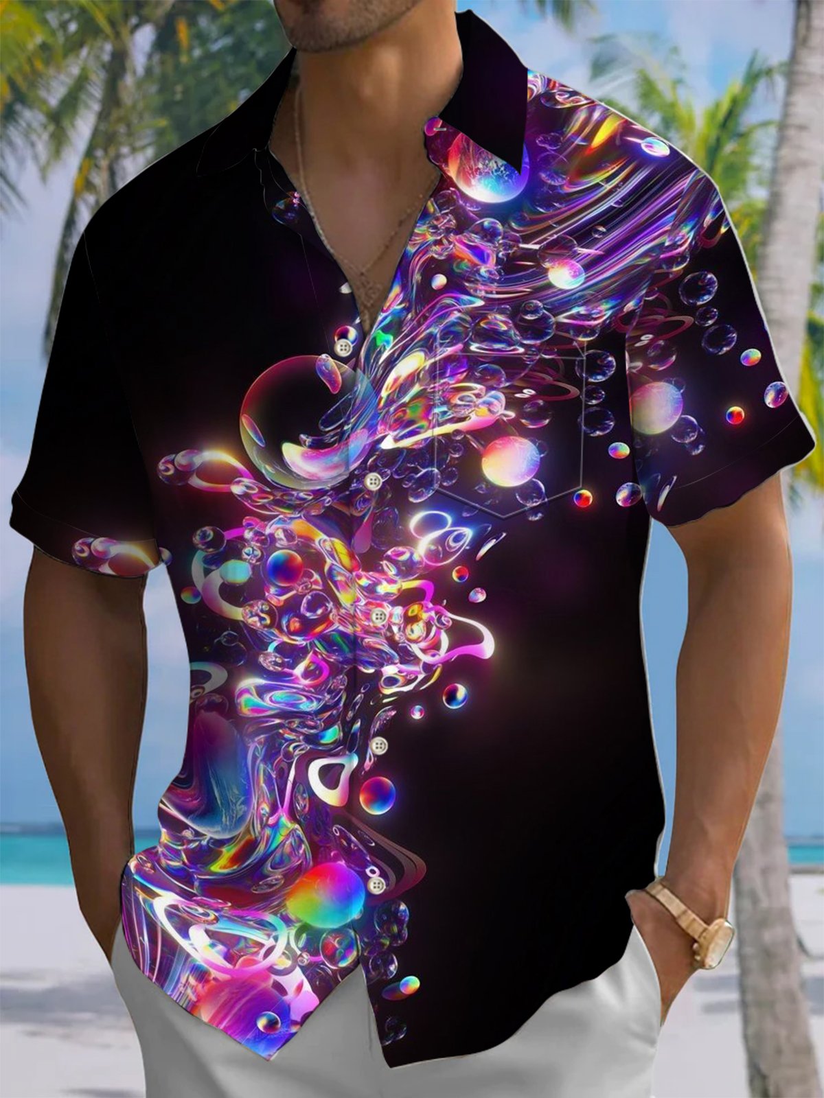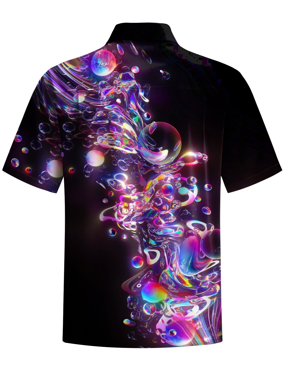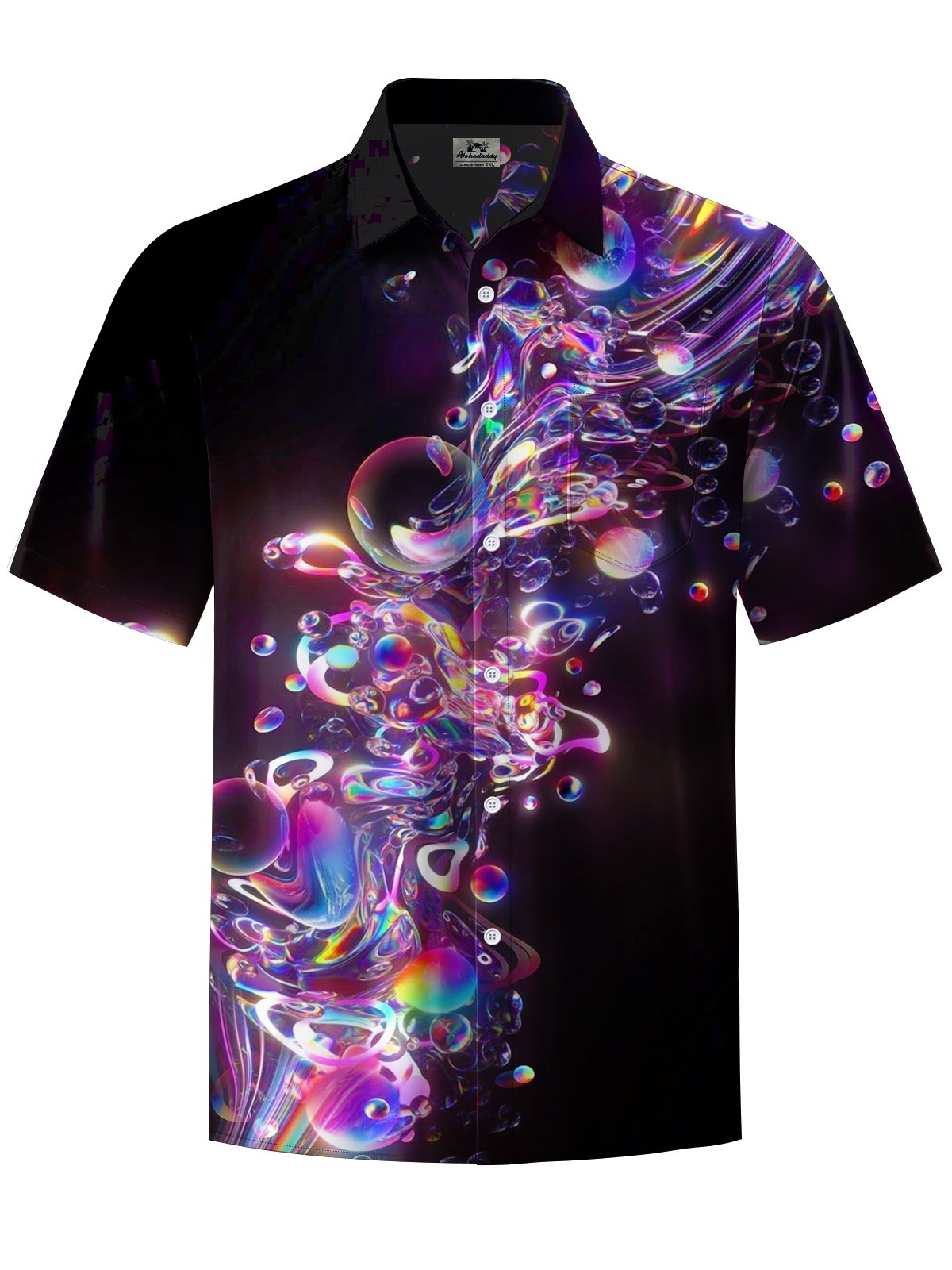 Alohadaddy® Casual Abstract Bubble Art Print Pocket Men's Stretch Short Sleeve Shirt Big & Tall
