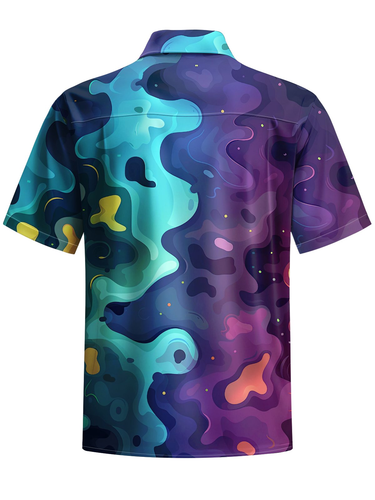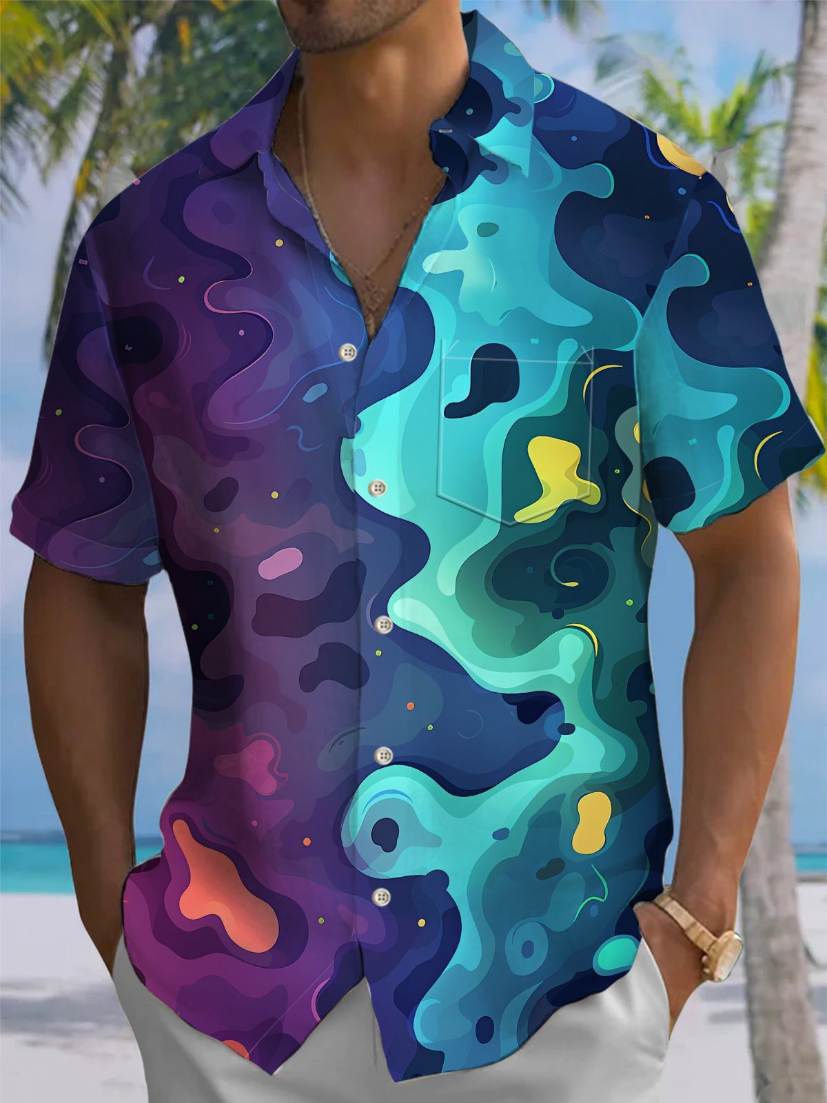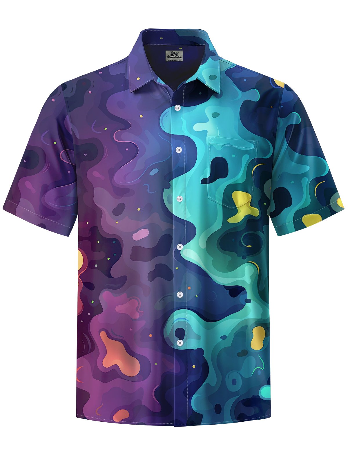 Alohadaddy® Casual Abstract Bubble Art Print Pocket Stretch Men's Short Sleeve Shirt Big & Tall