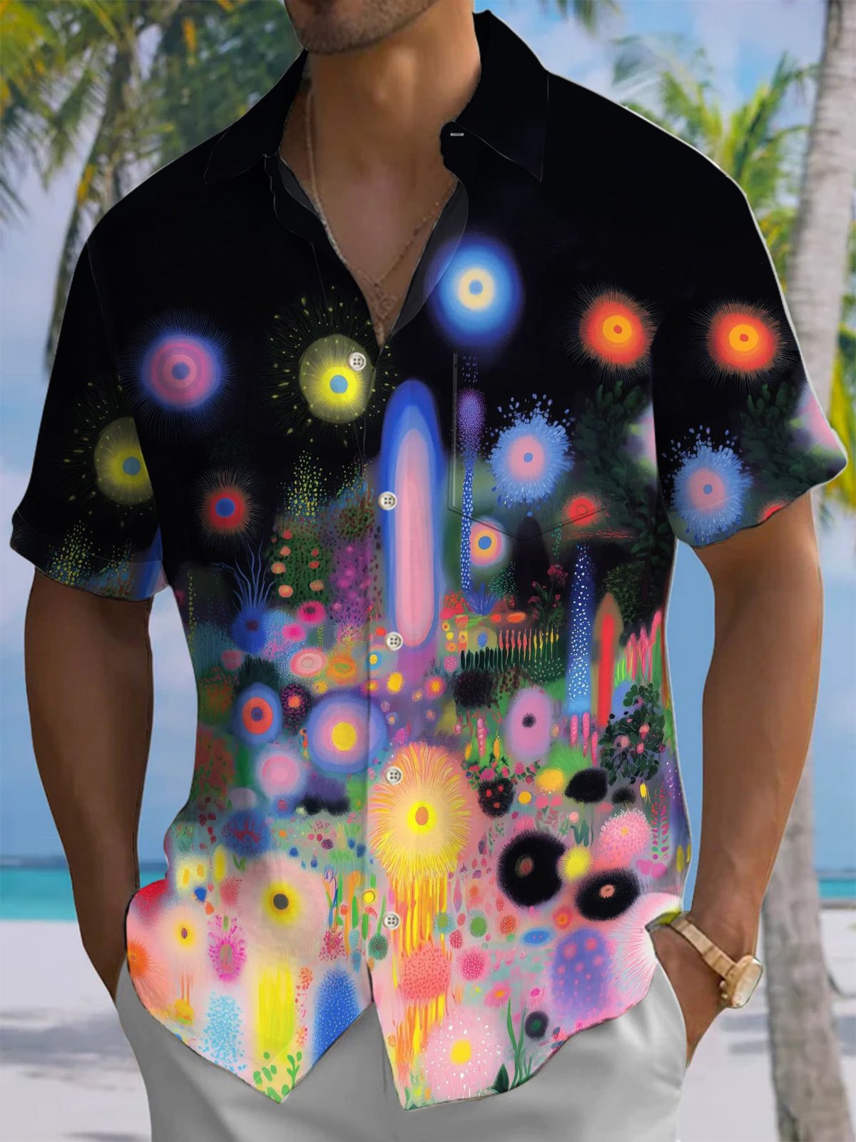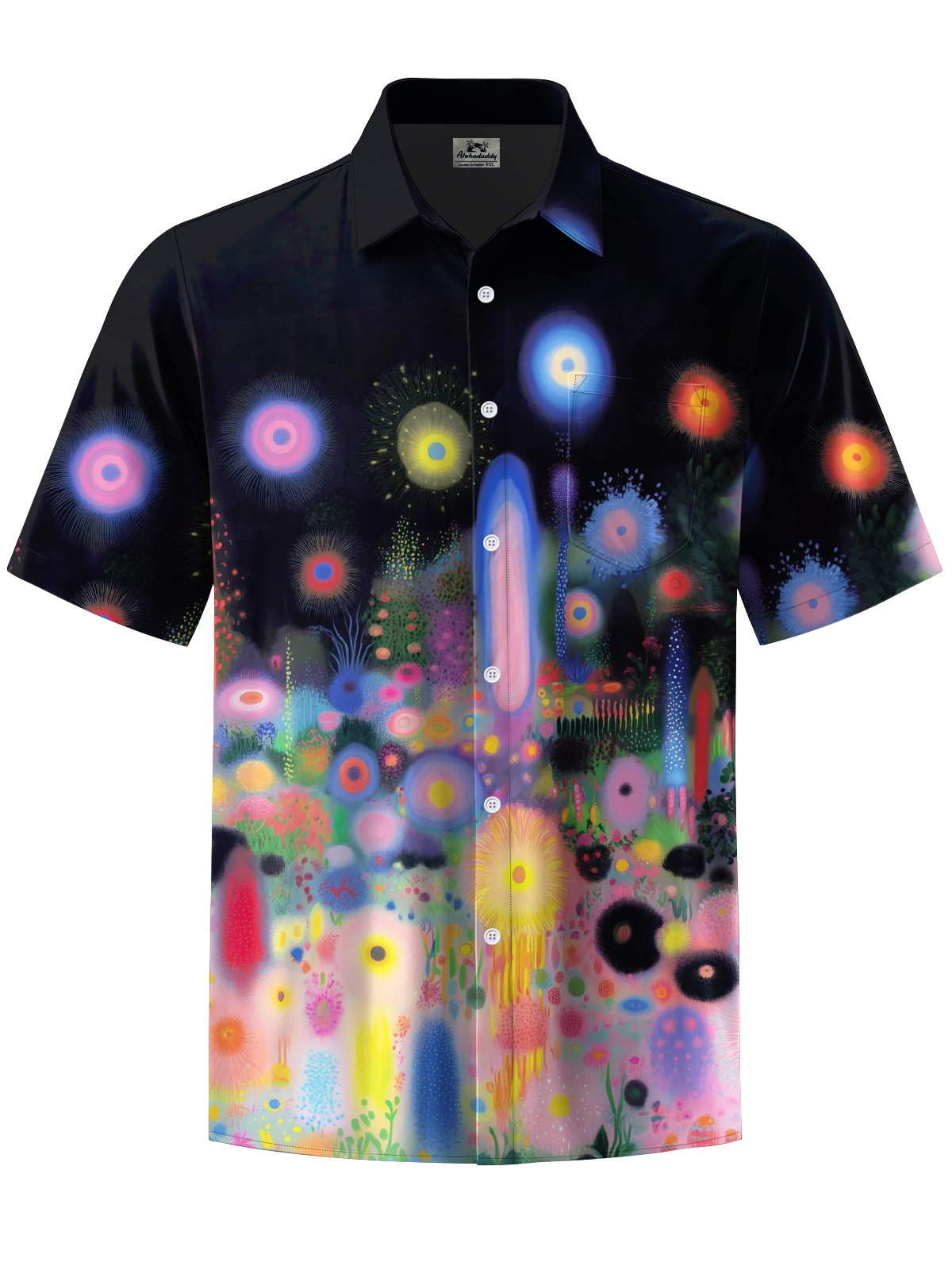 Alohadaddy® Casual Abstract Fireworks Print Art Pocket Stretch Men's Short Sleeve Shirt Big & Tall