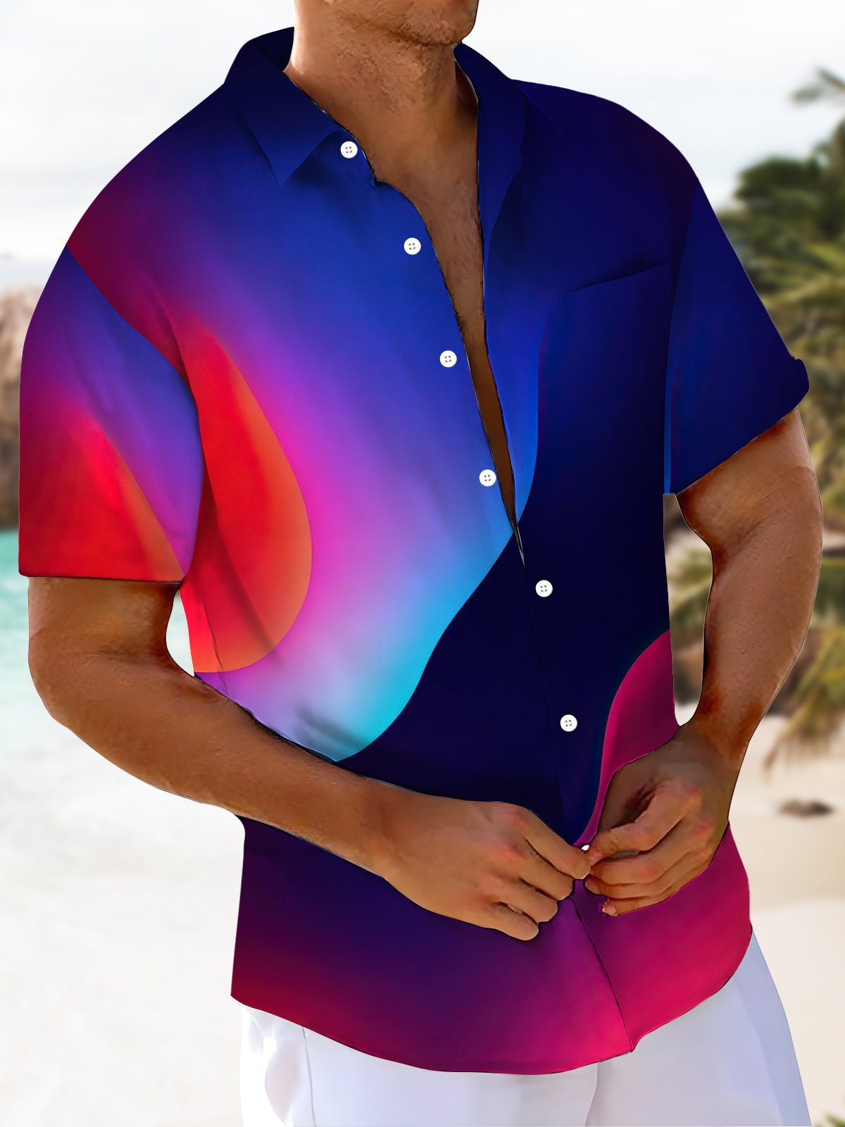 Alohadaddy® Casual Abstract Print Art Pocket Stretch Men's Short Sleeve Shirt Big & Tall