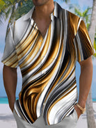 Alohadaddy® Casual Abstract Print Art Pocket Stretch Men's Short Sleeve Shirt Big & Tall