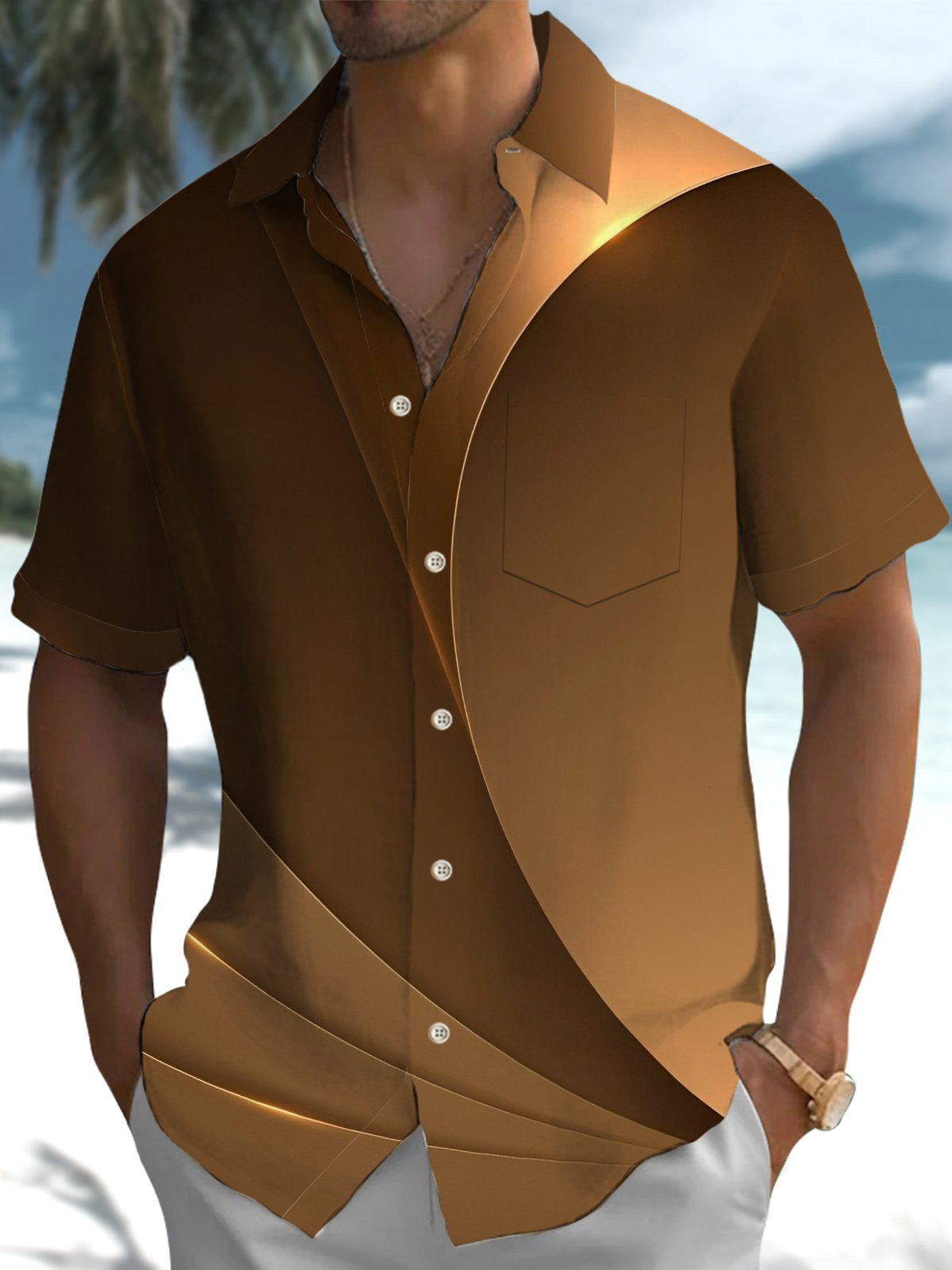 Alohadaddy® Casual Abstract Print Art Stretch Pocket Men's Short Sleeve Shirt Big & Tall