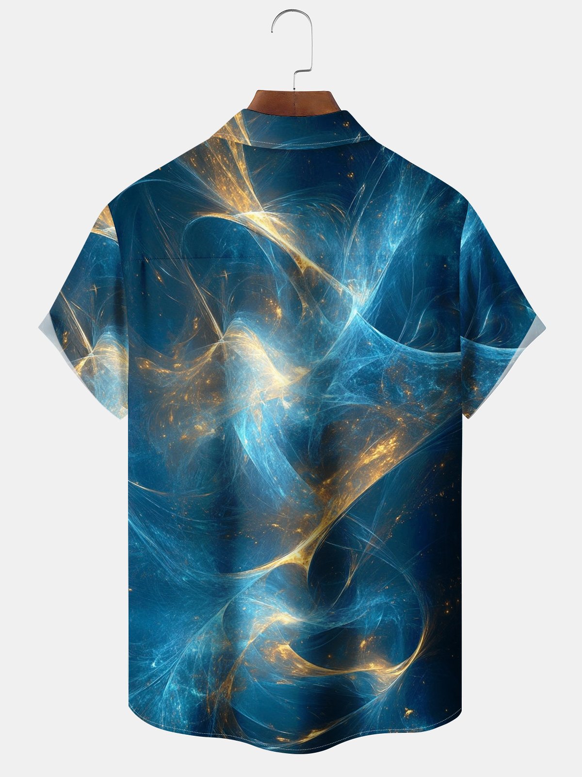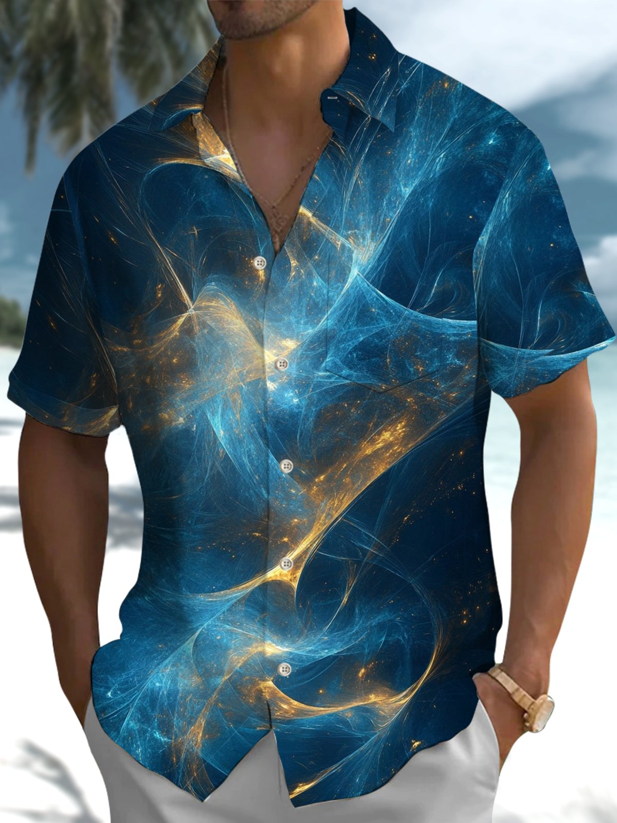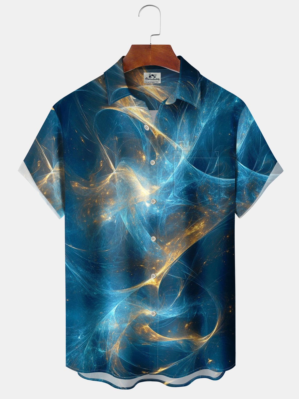 Alohadaddy® Casual Abstract Print Pocket Stretch Men's Short Sleeve Shirt Big & Tall