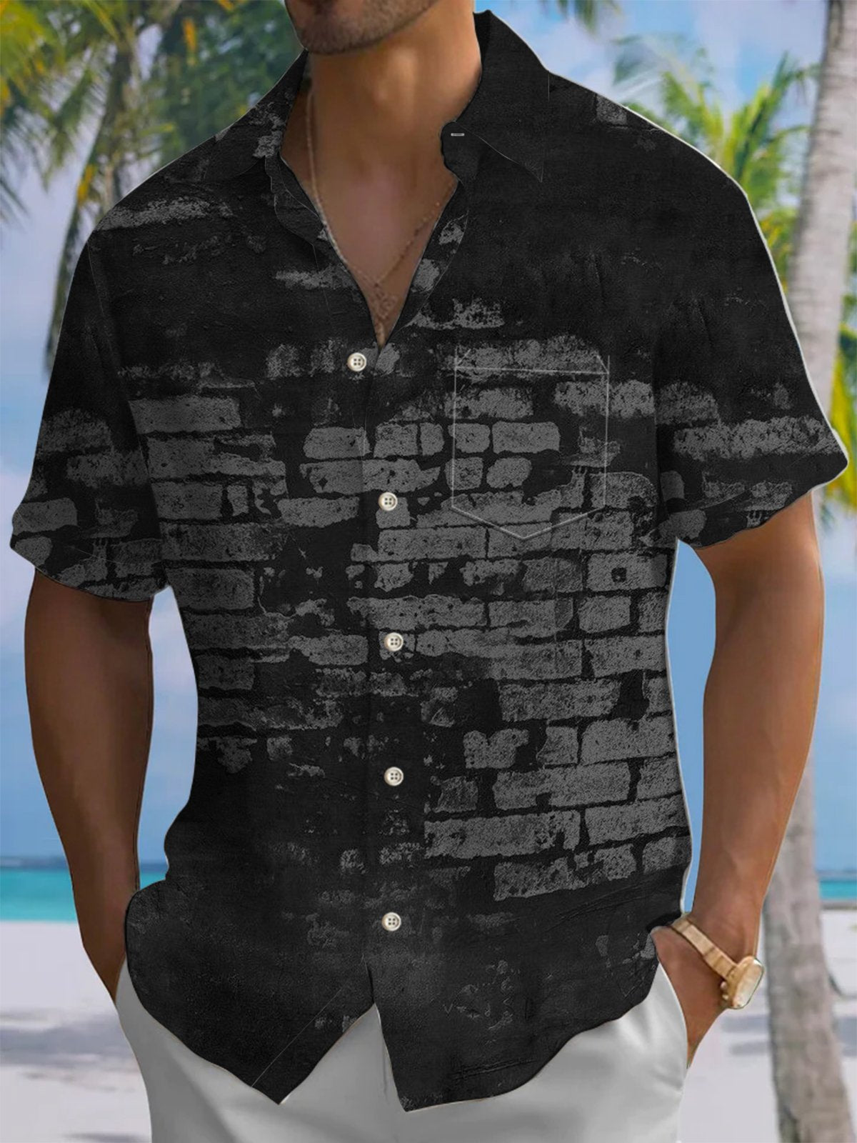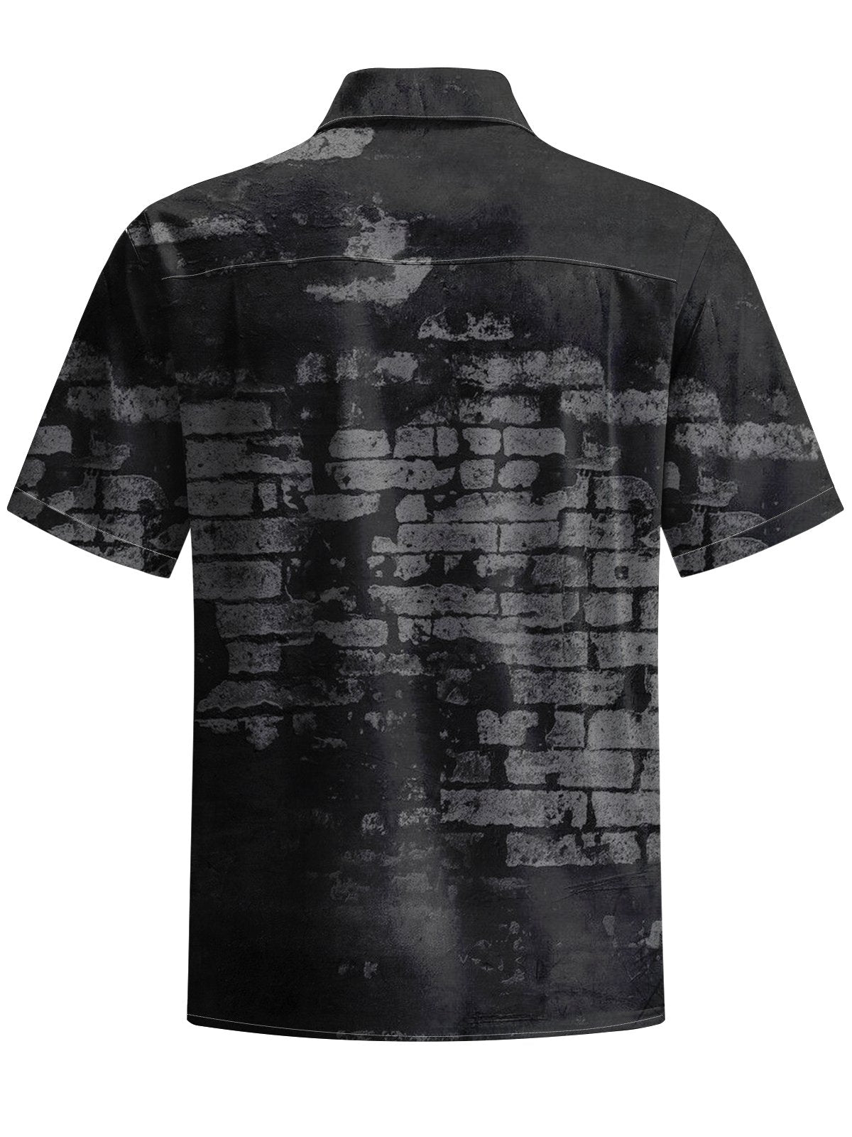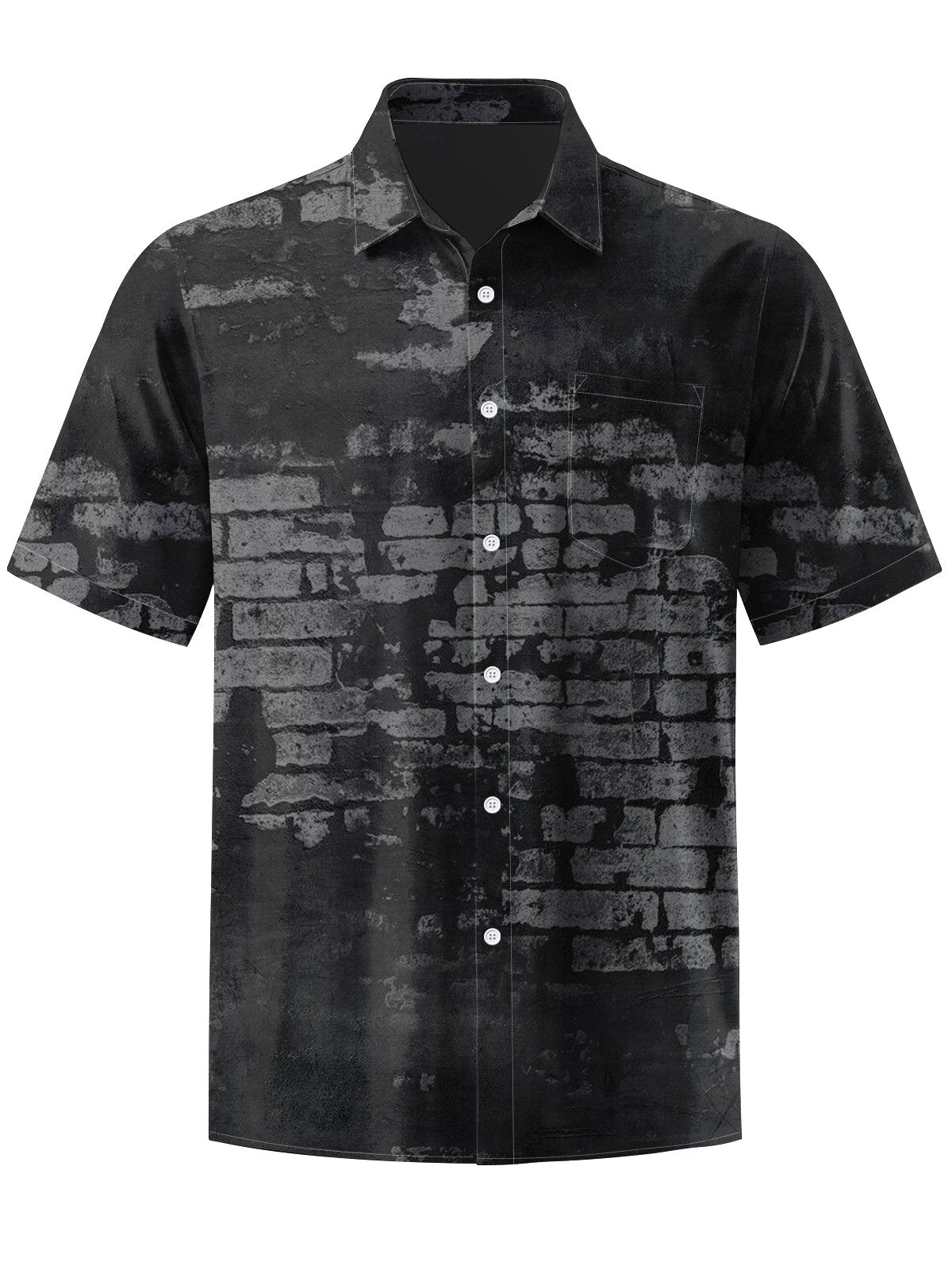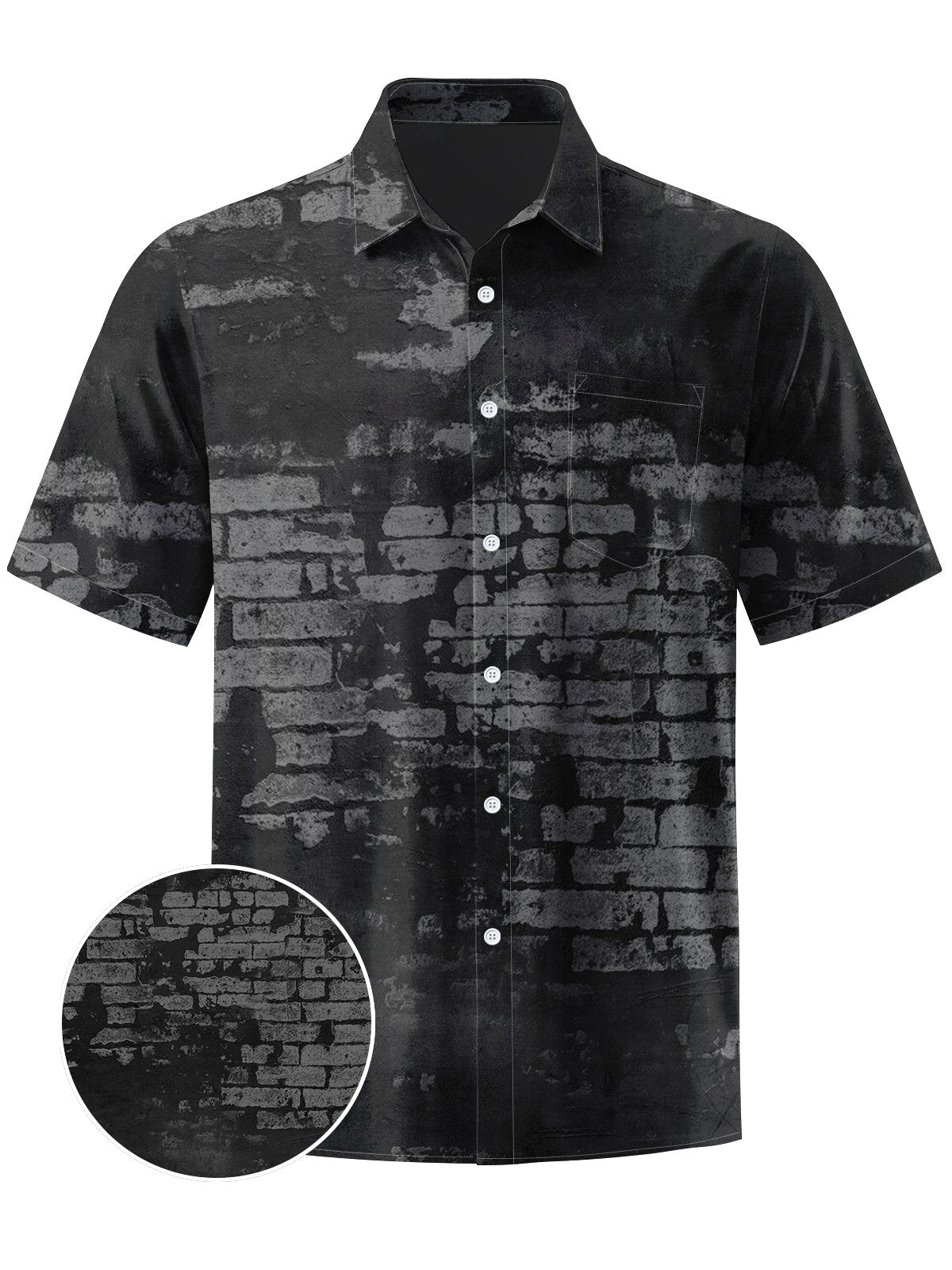 Alohadaddy® Casual Brick Wall Geometric Print Art Moisture Wicking Men's Short Sleeve Shirt Big & Tall