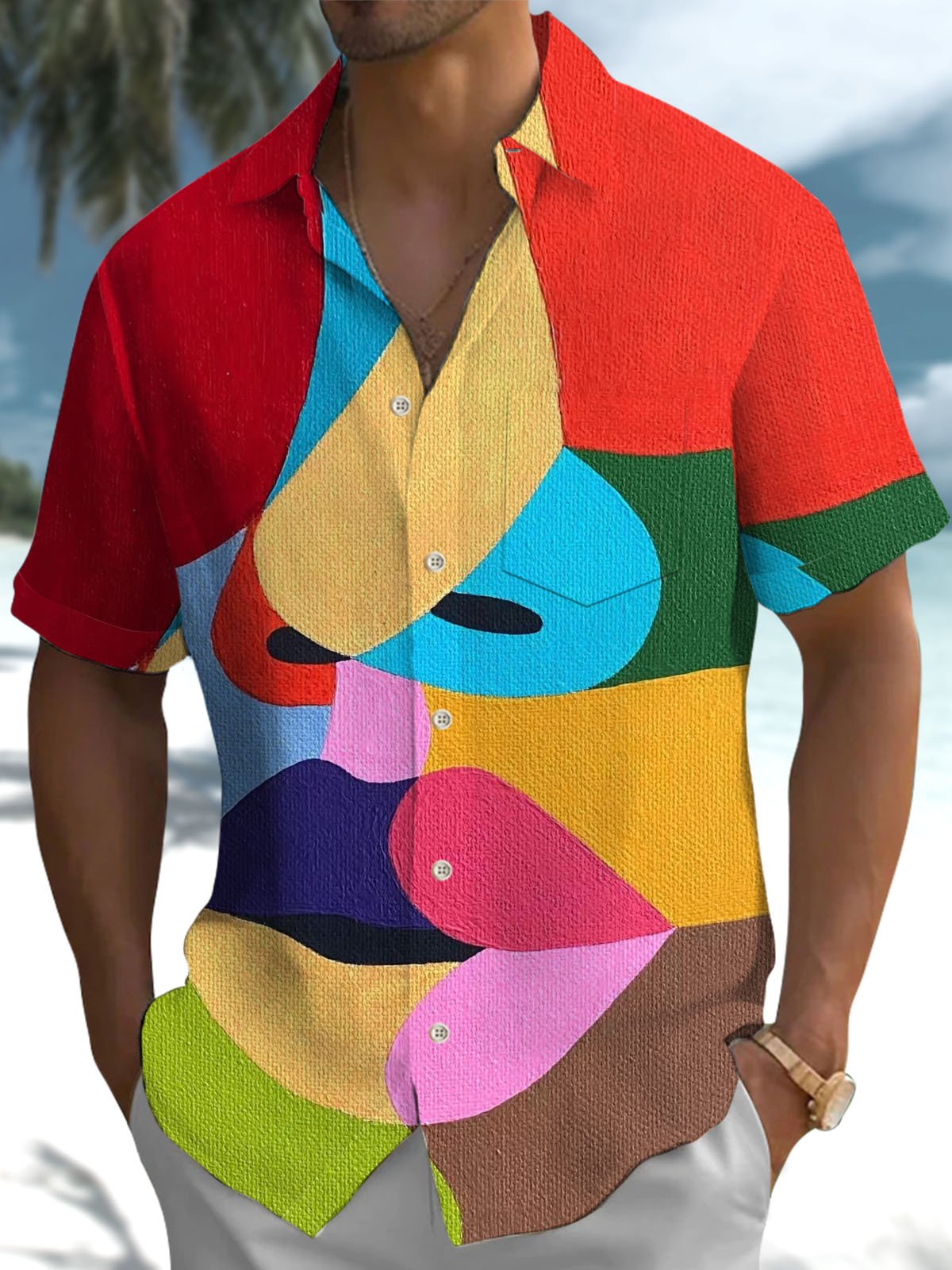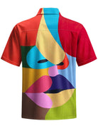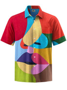 Alohadaddy® Casual Geometric Face Print Art Pocket Stretch Men's Short Sleeve Shirt Big & Tall