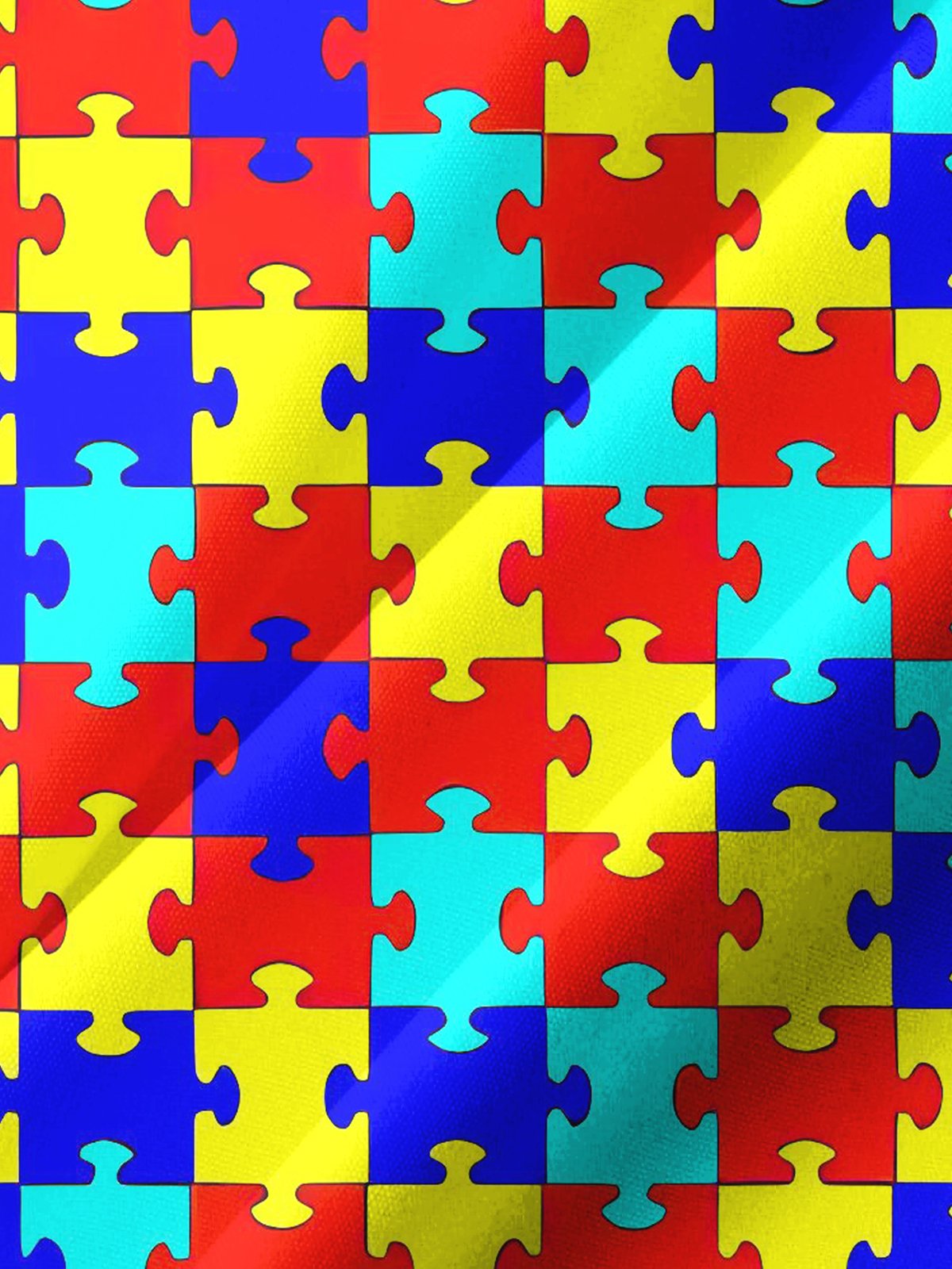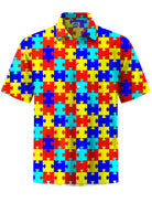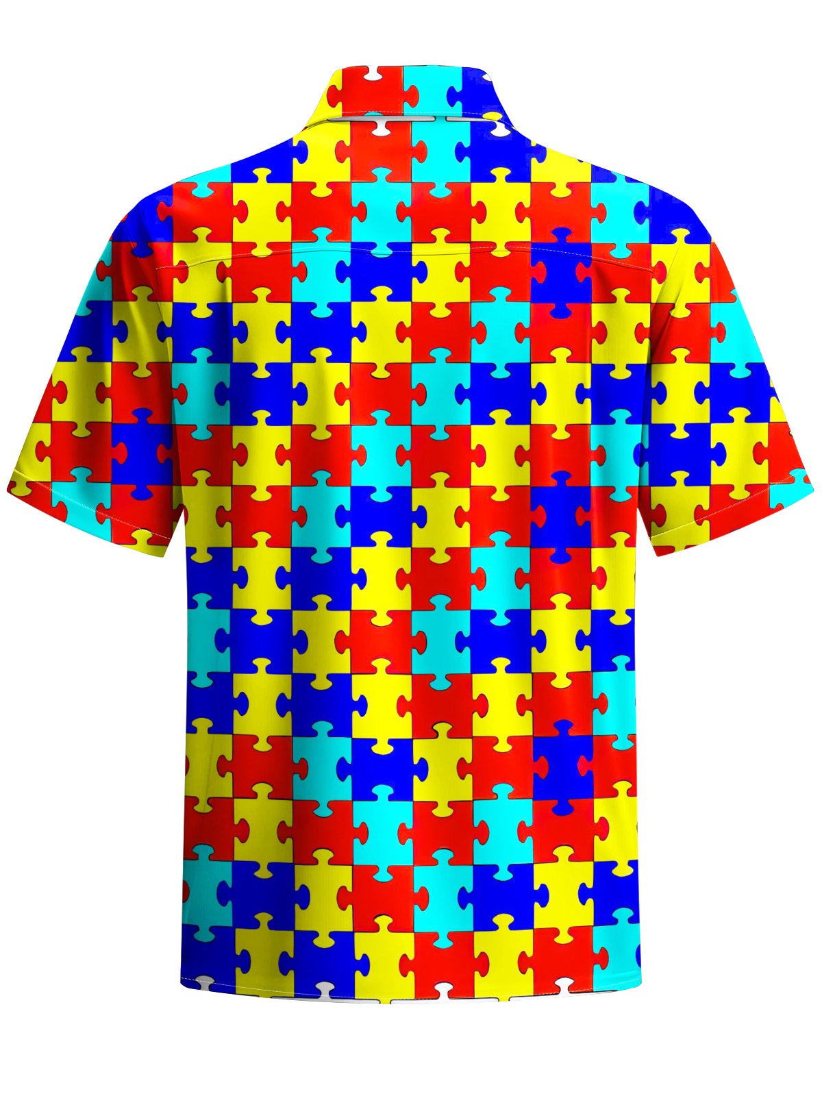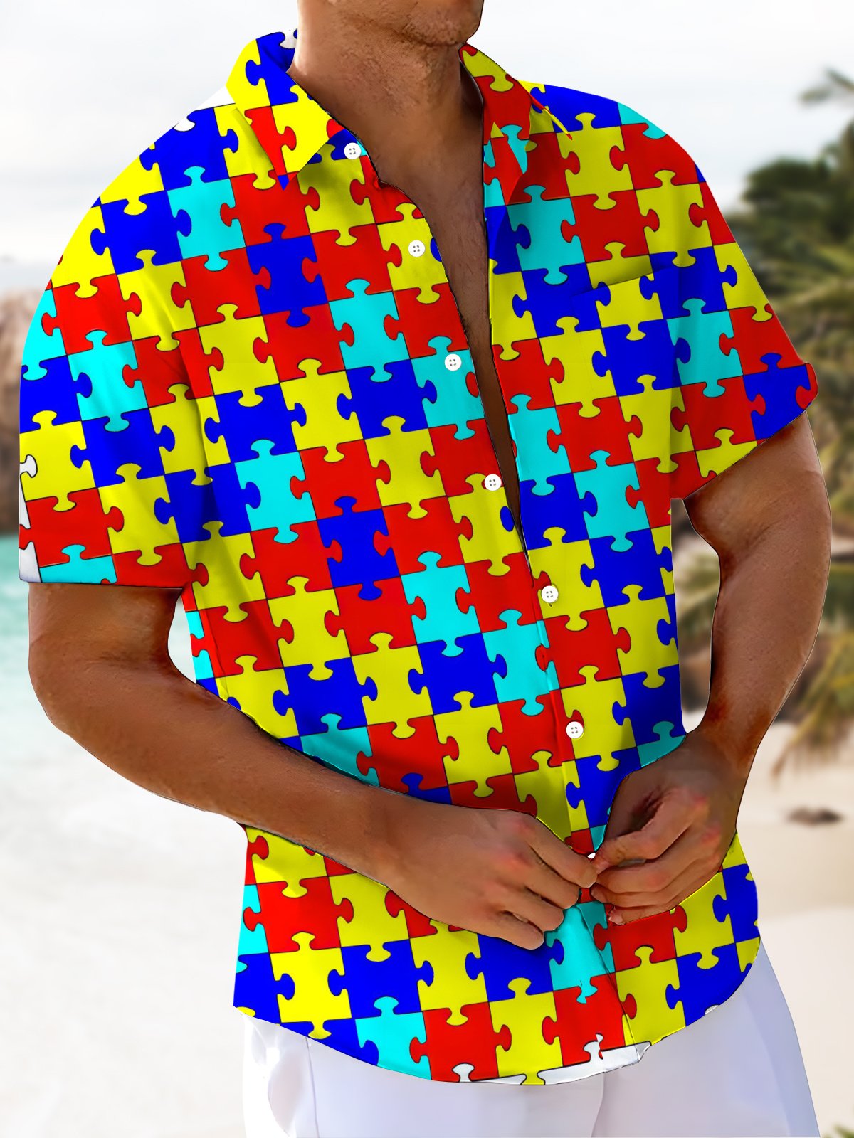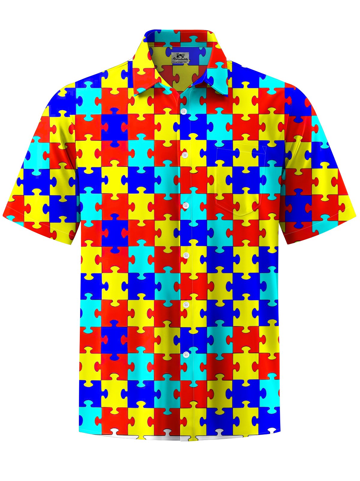 Alohadaddy® Casual Geometric Puzzle Art Print Chest Pocket Men's Stretch Short Sleeve Shirt Big & Tall