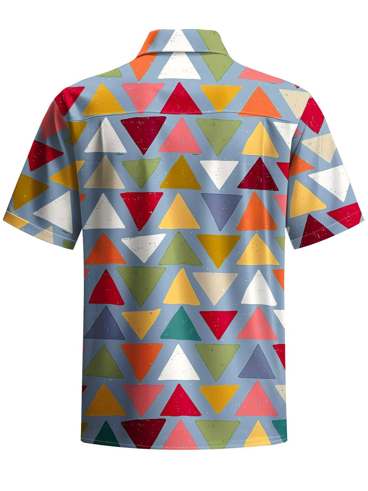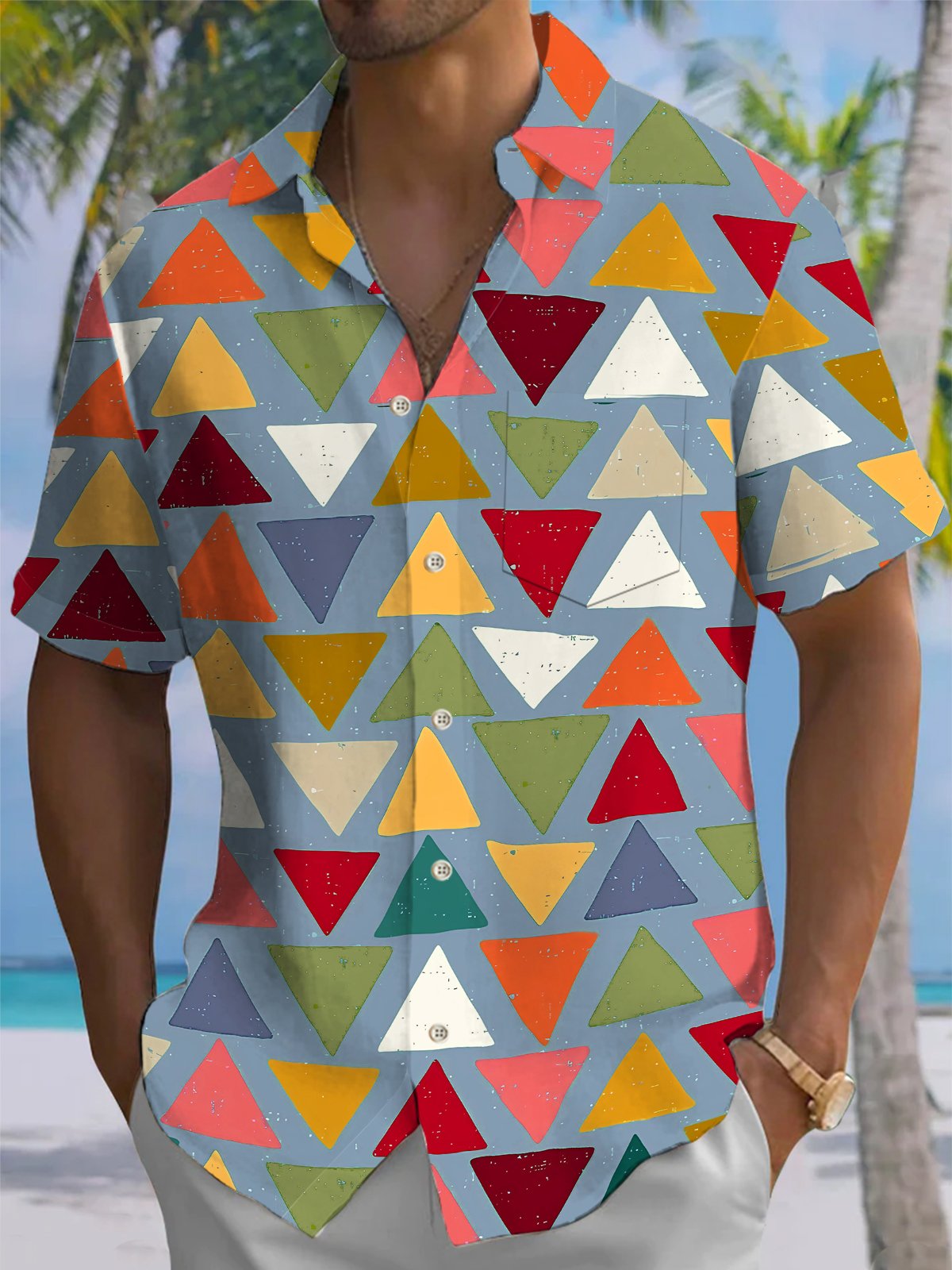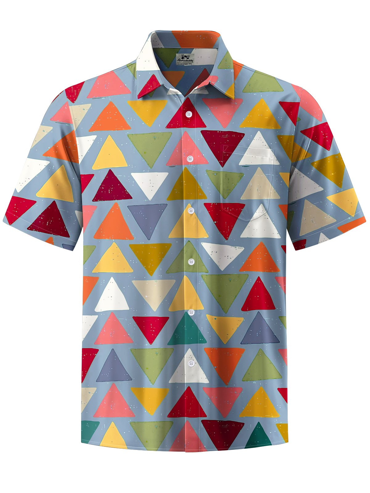 Alohadaddy® Casual Geometric Triangle Print Art Pocket Stretch Men's Short Sleeve Shirt Big & Tall