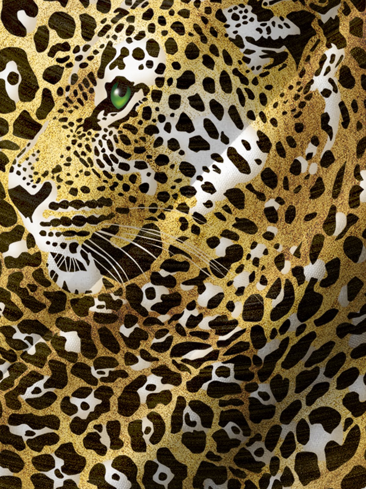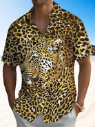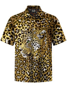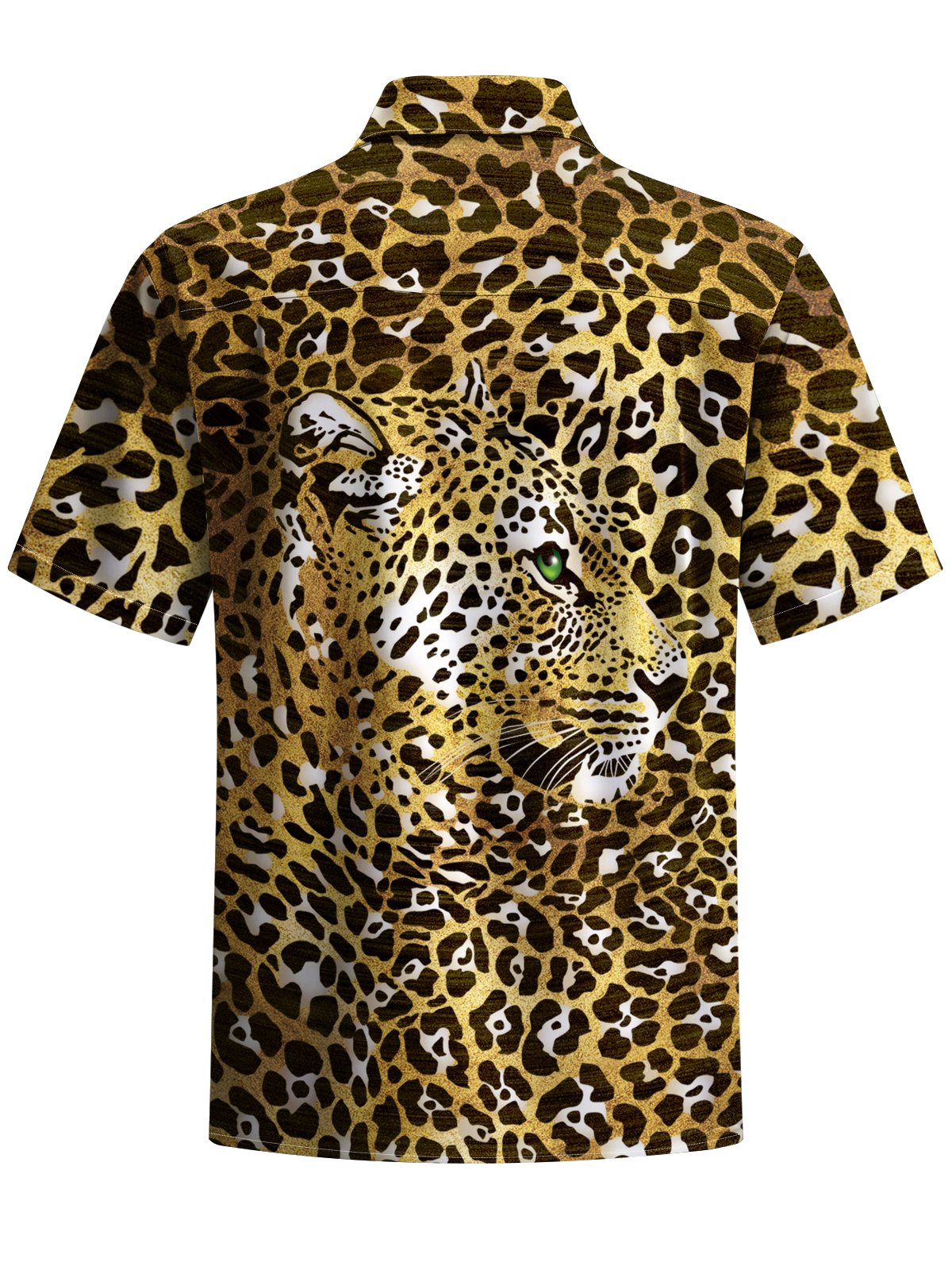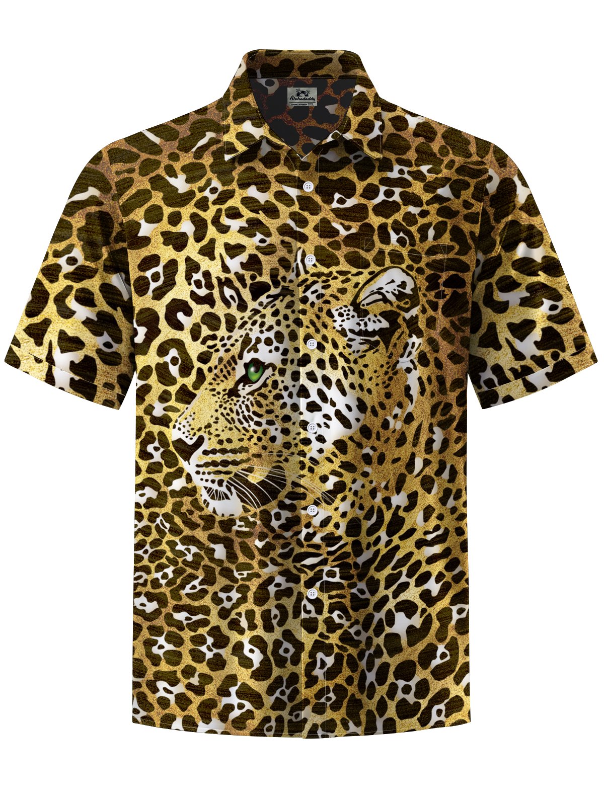 Alohadaddy® Casual Leopard Print Art Print Chest Pocket Men's Stretch Short Sleeve Shirt Big & Tall
