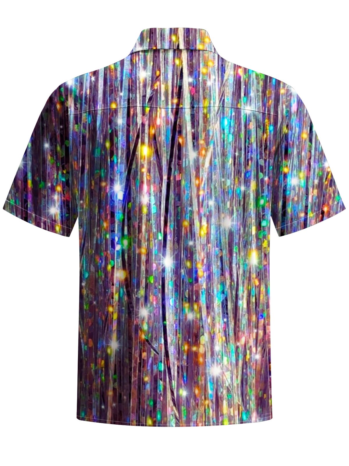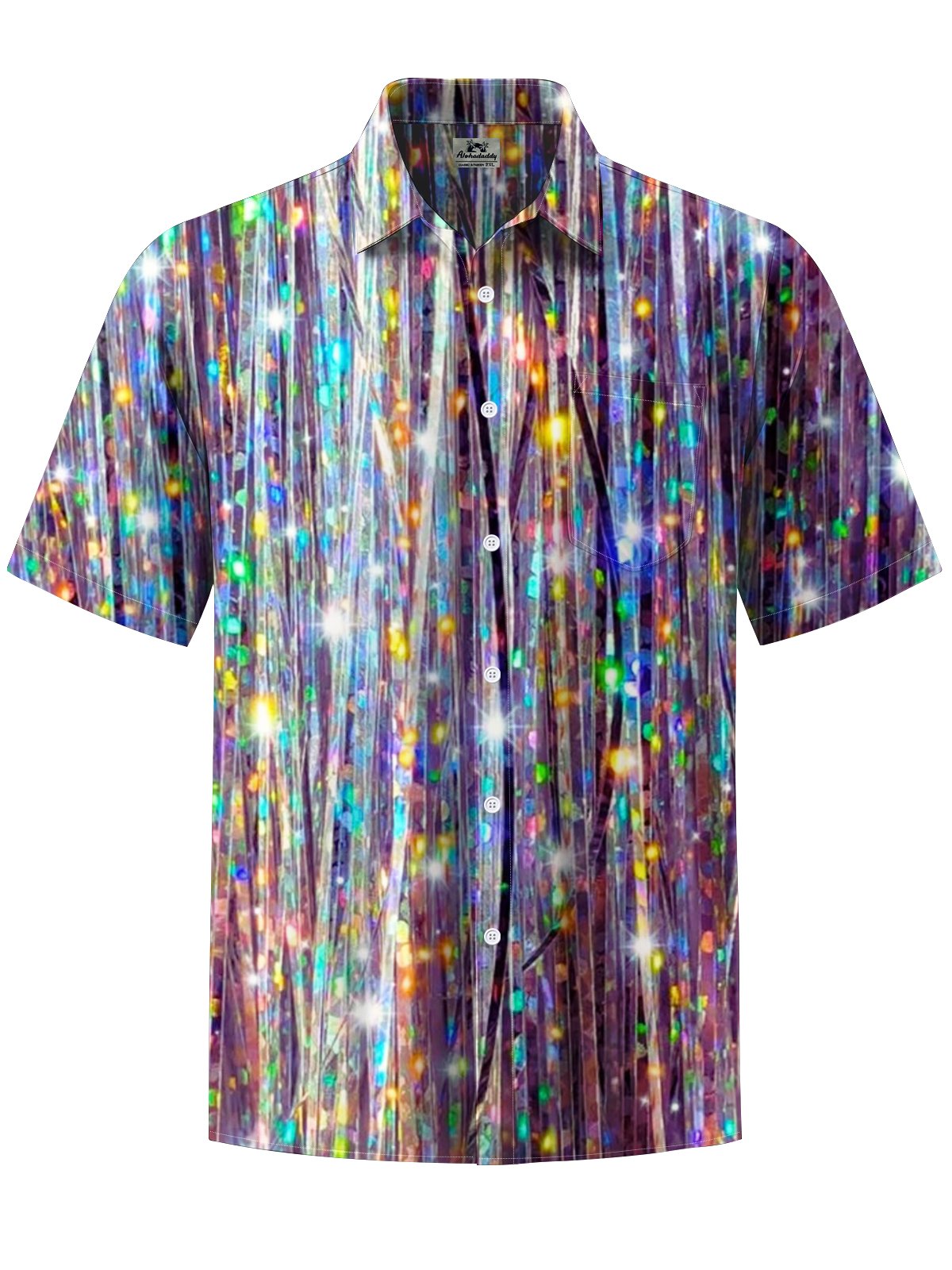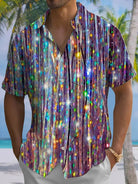 Alohadaddy® Casual Nightclub Stripes Neon Geometric Art Print Chest Pocket Men's Short Sleeve Shirt Big & Tall