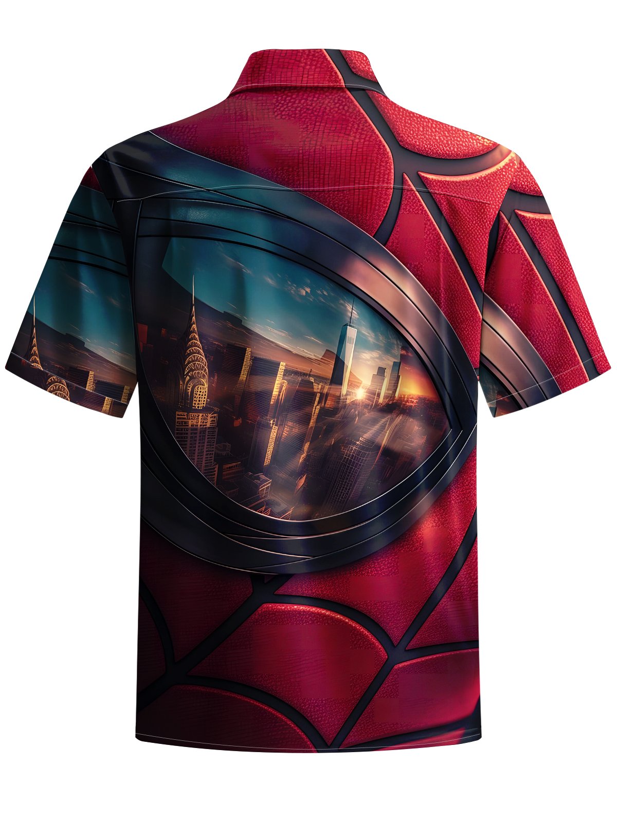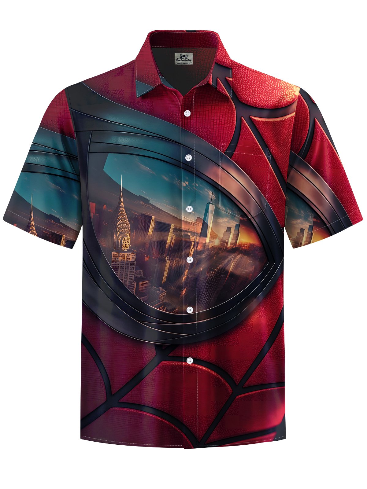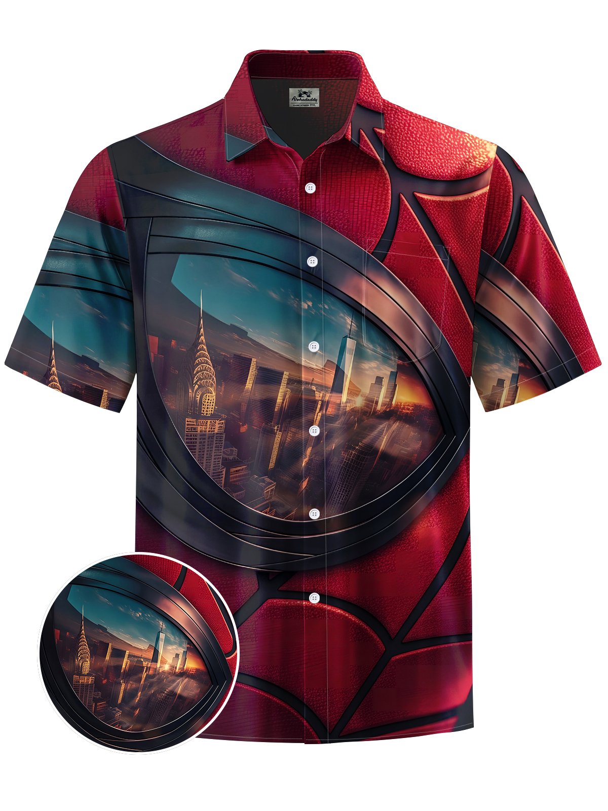 Alohadaddy® Casual Spiderman Art Print Chest Pocket Mens Short Sleeve Shirt Big & Tall