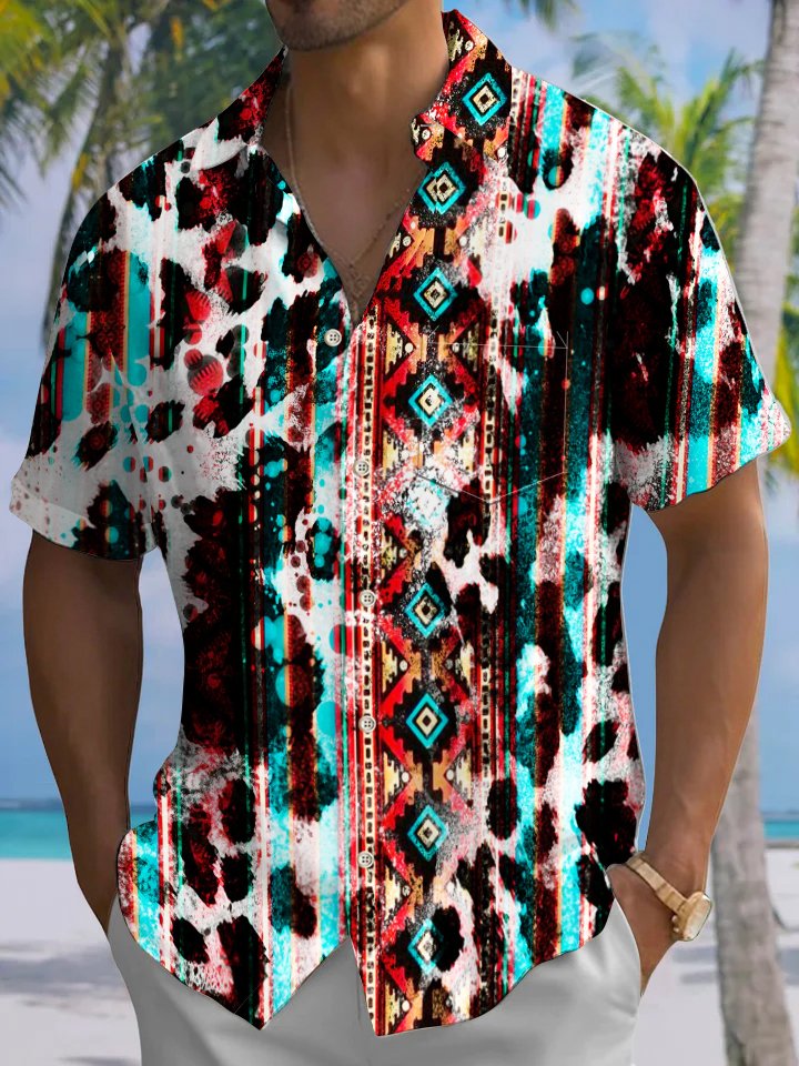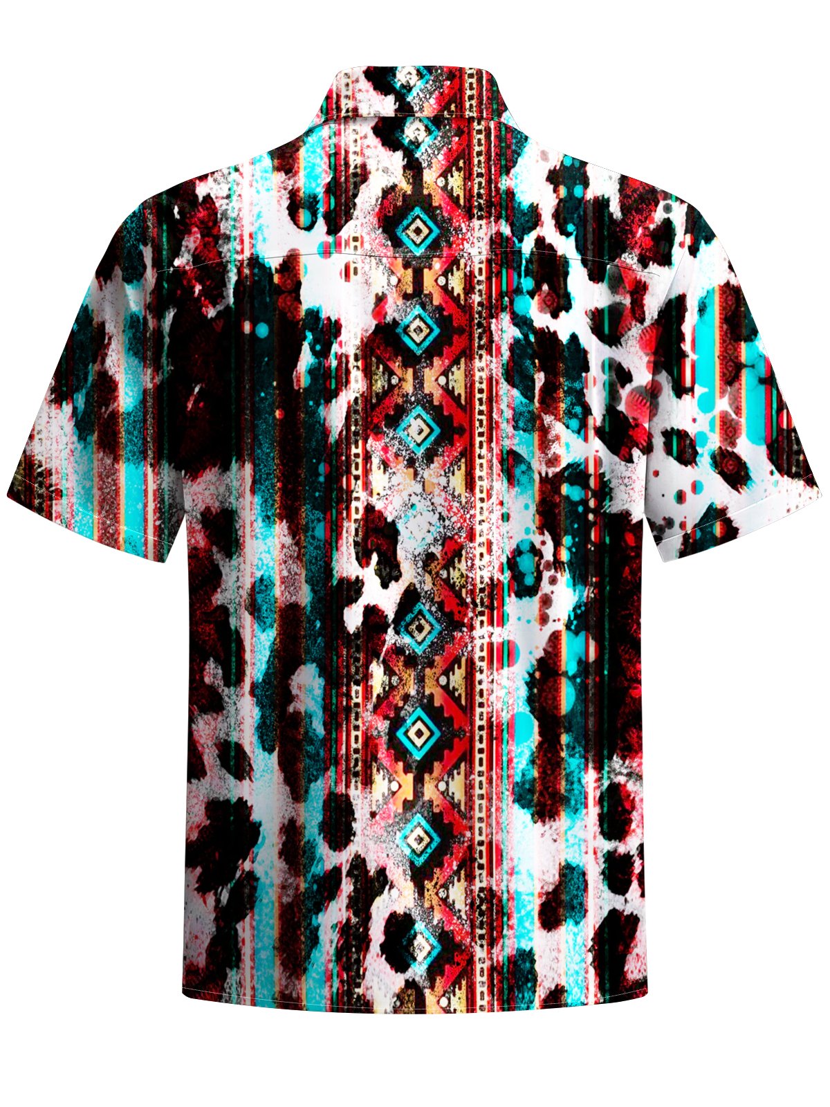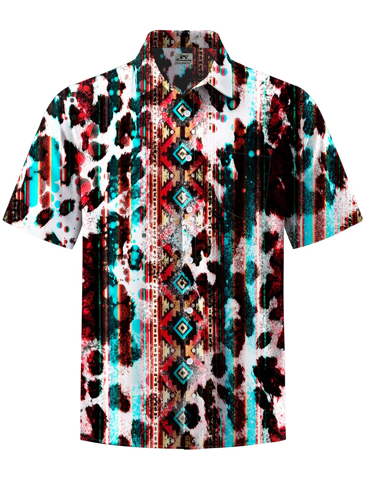 Alohadaddy® Casual Stripe Abstract Art Print Chest Pocket Men's Stretch Short Sleeve Shirt Big & Tall