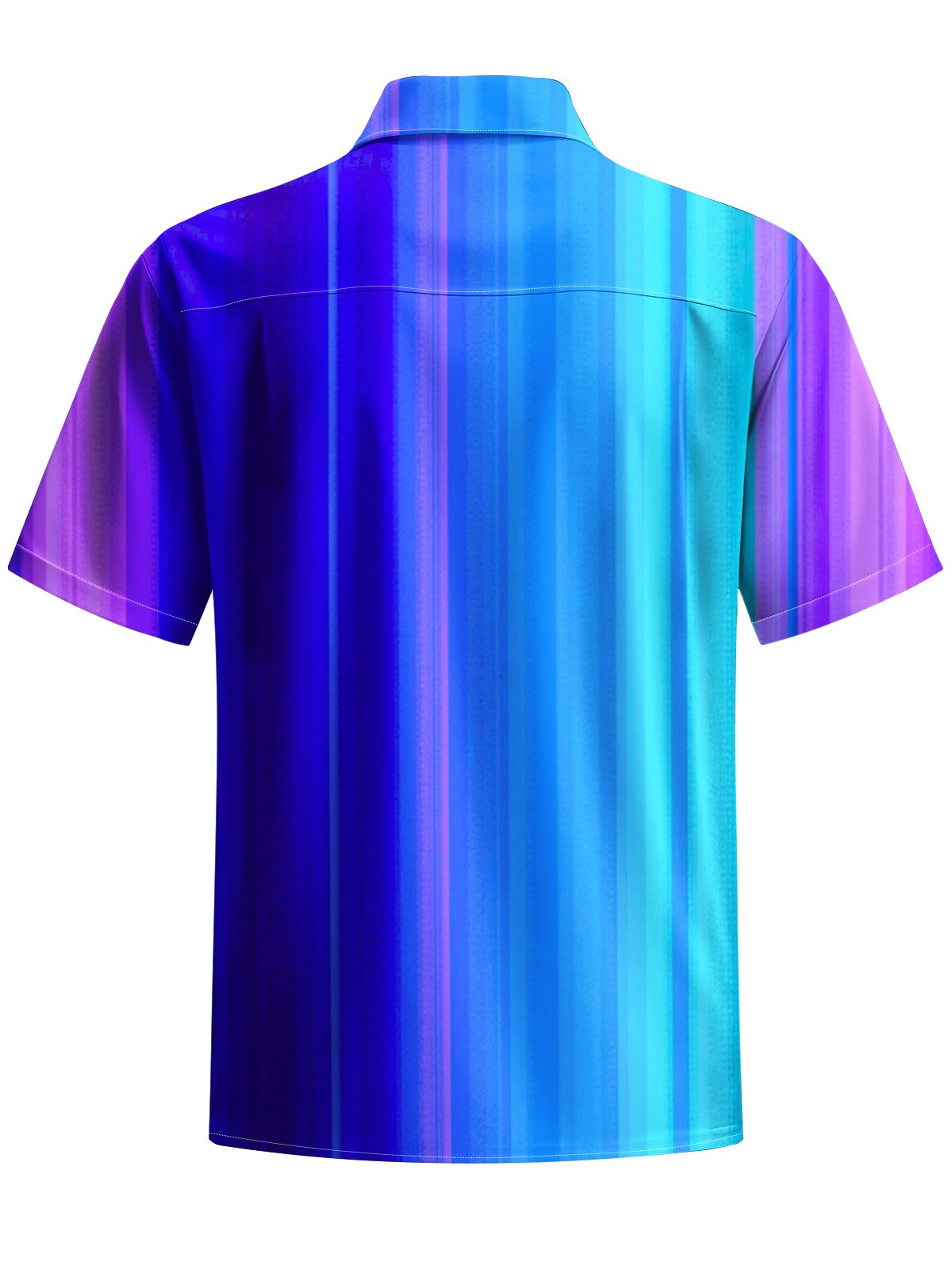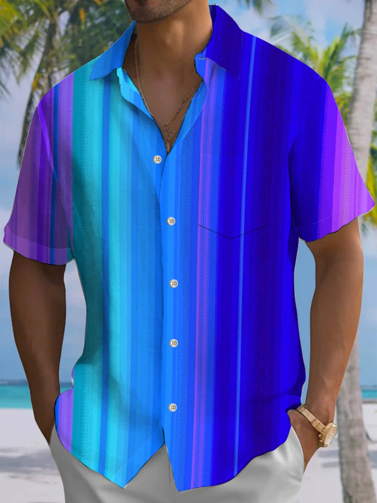 Alohadaddy® Casual Stripe Ombre Print Art Pocket Stretch Men's Short Sleeve Shirt Big & Tall