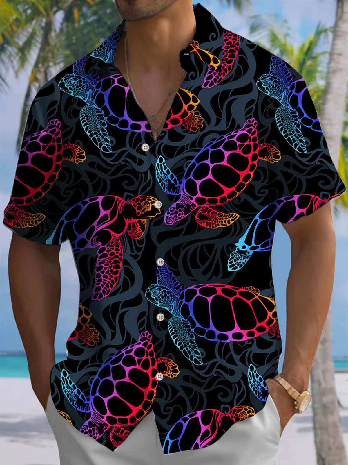 Alohadaddy® Casual Turtle Print Art Pocket Stretch Men's Short Sleeve Shirt Big & Tall