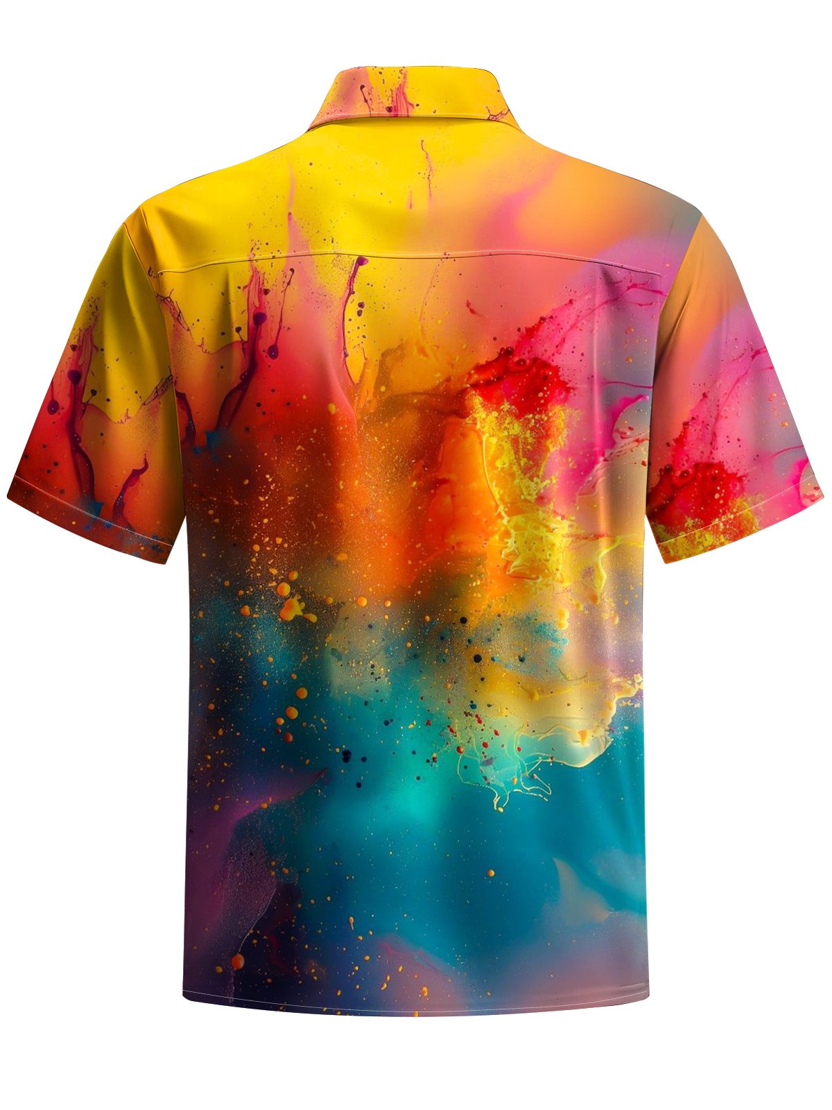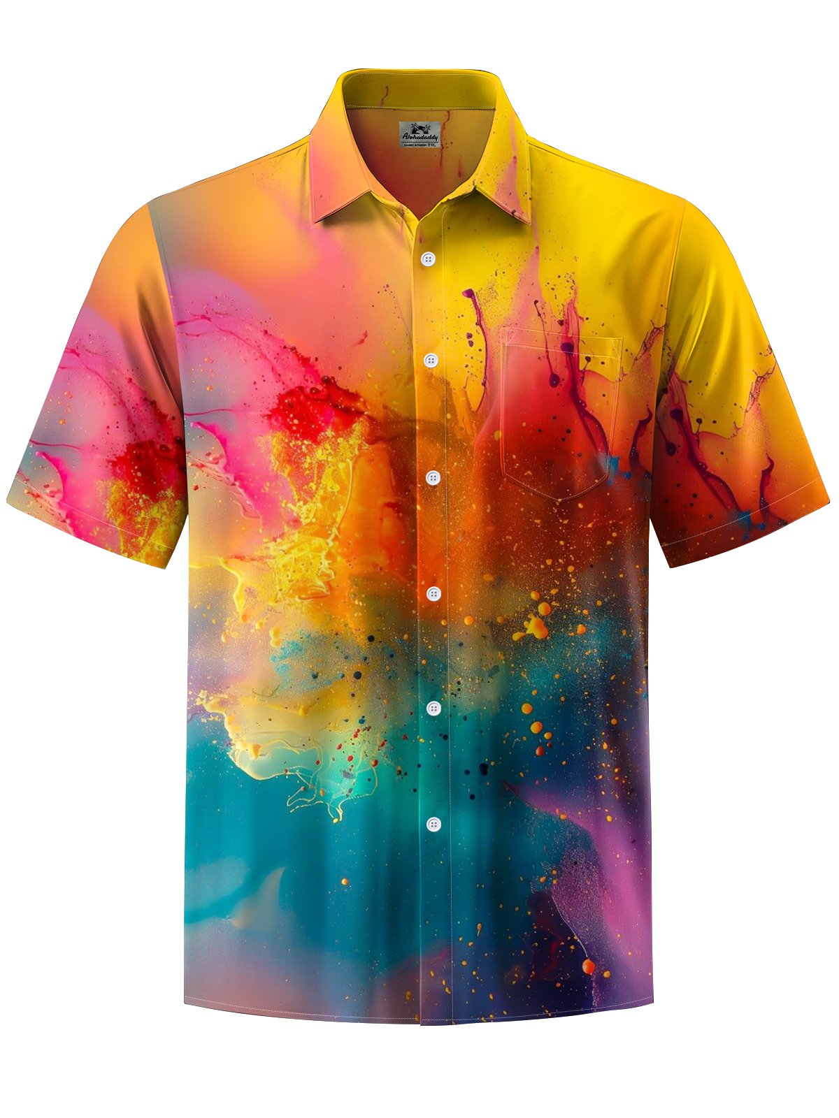 Alohadaddy® Hawaiian Abstract Art Print Chest Pocket Men's Short Sleeve Shirt Big & Tall