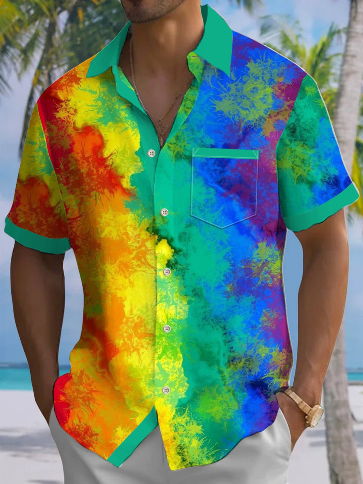 Alohadaddy® Hawaiian Abstract Art Print Chest Pocket Mens Short Sleeve Shirts Big & Tall