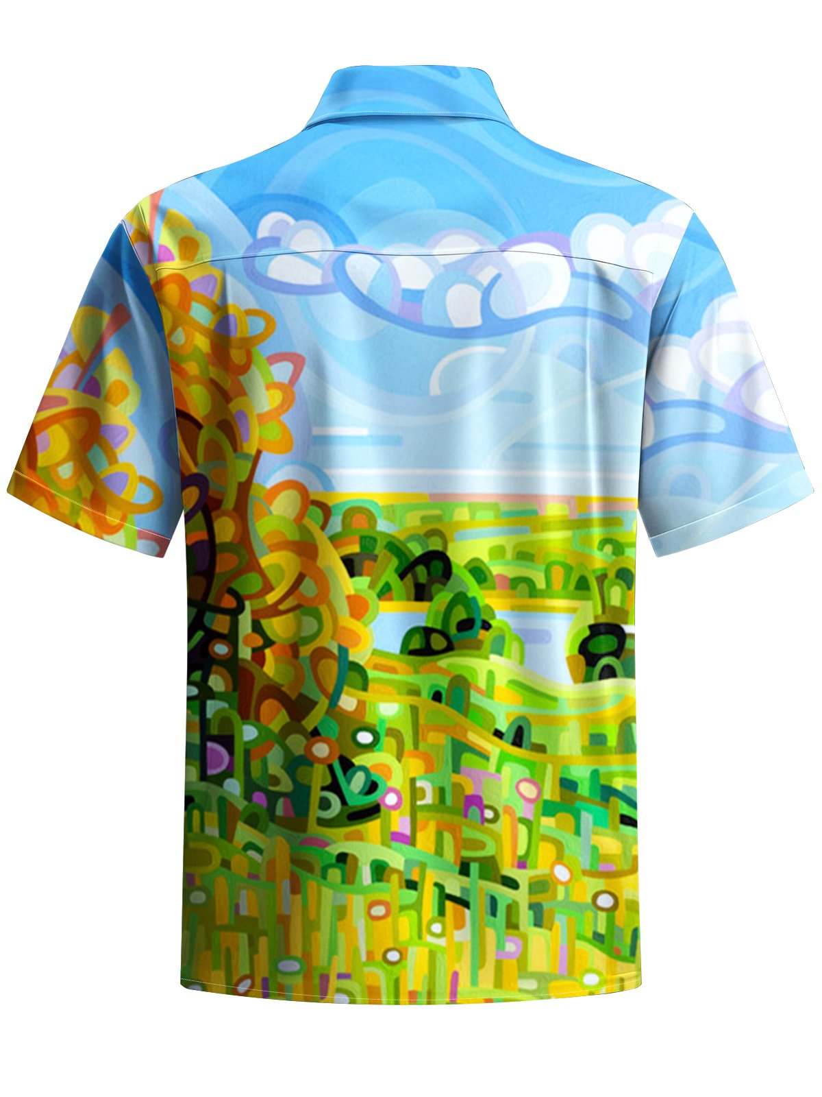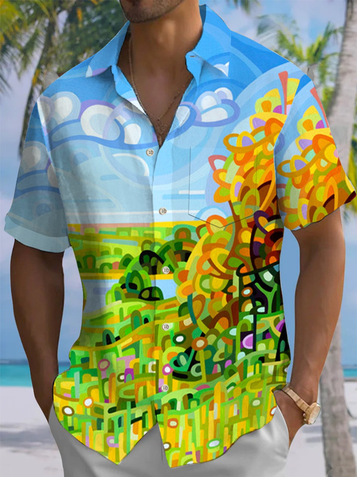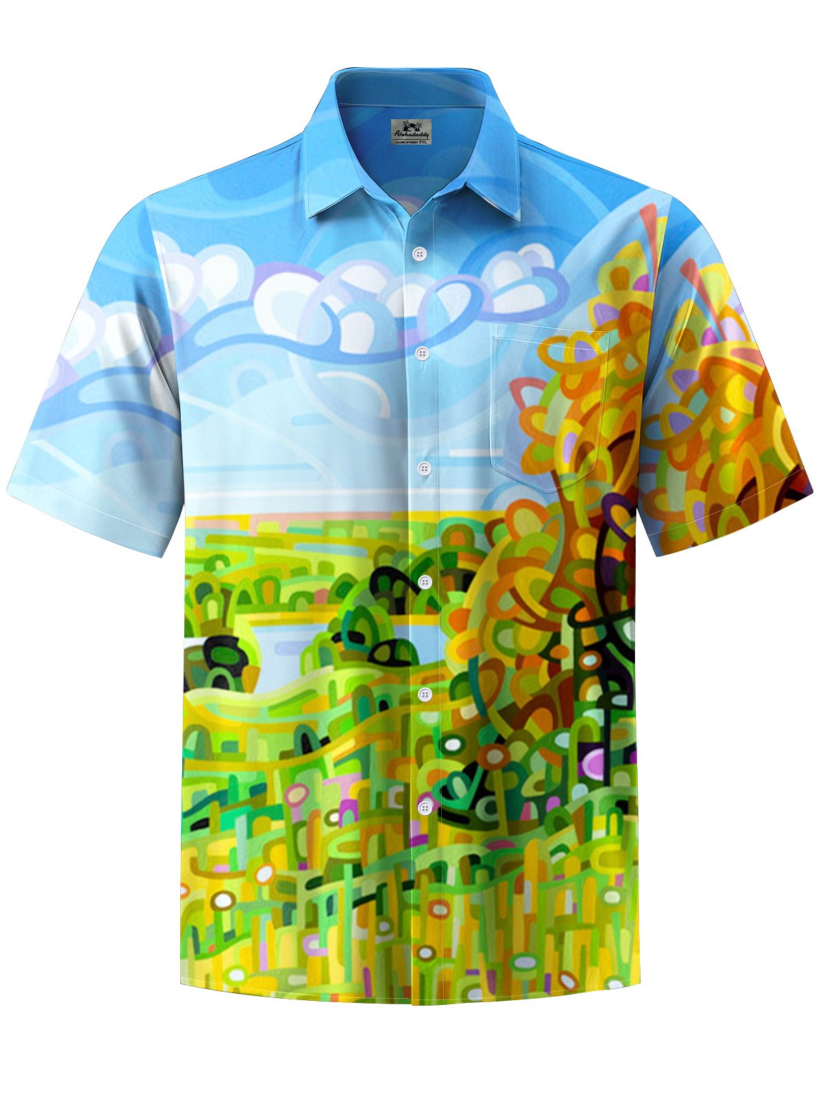 Alohadaddy® Hawaiian Abstract Art Print Elastic Pocket Button Men's Short Sleeve Shirt Big & Tall