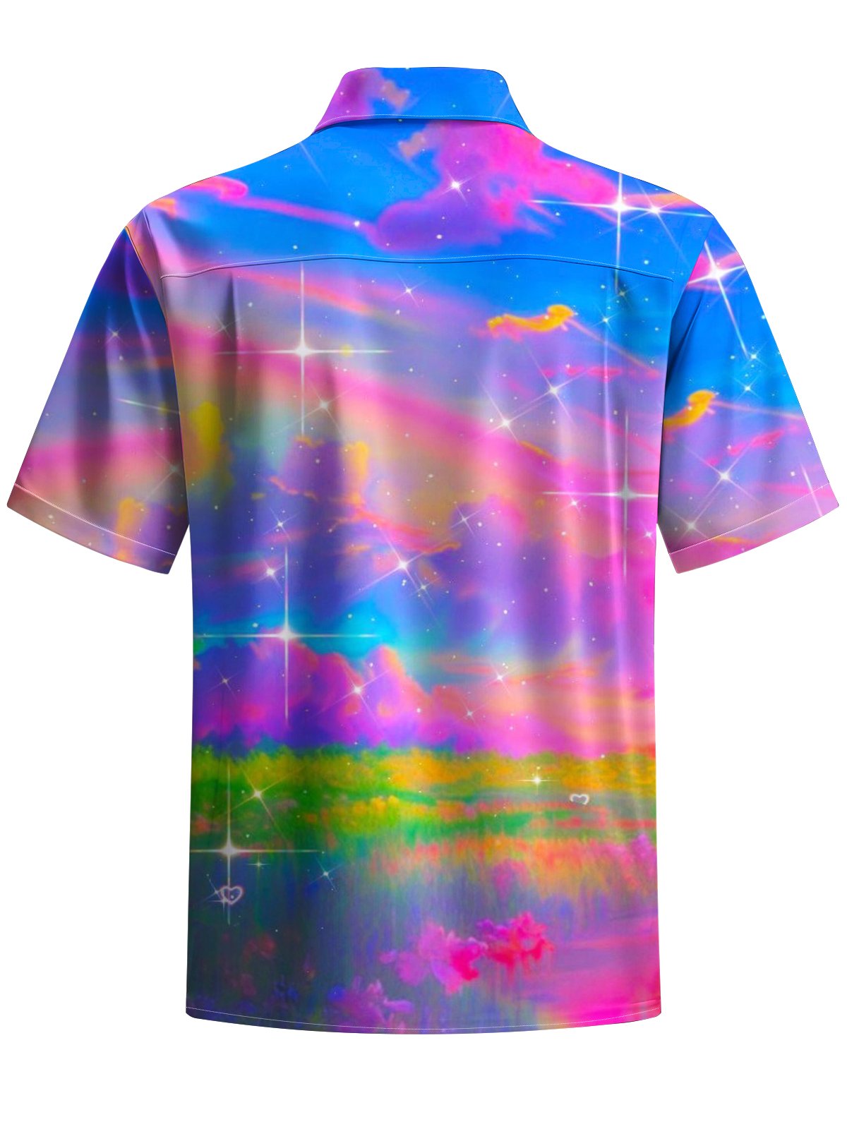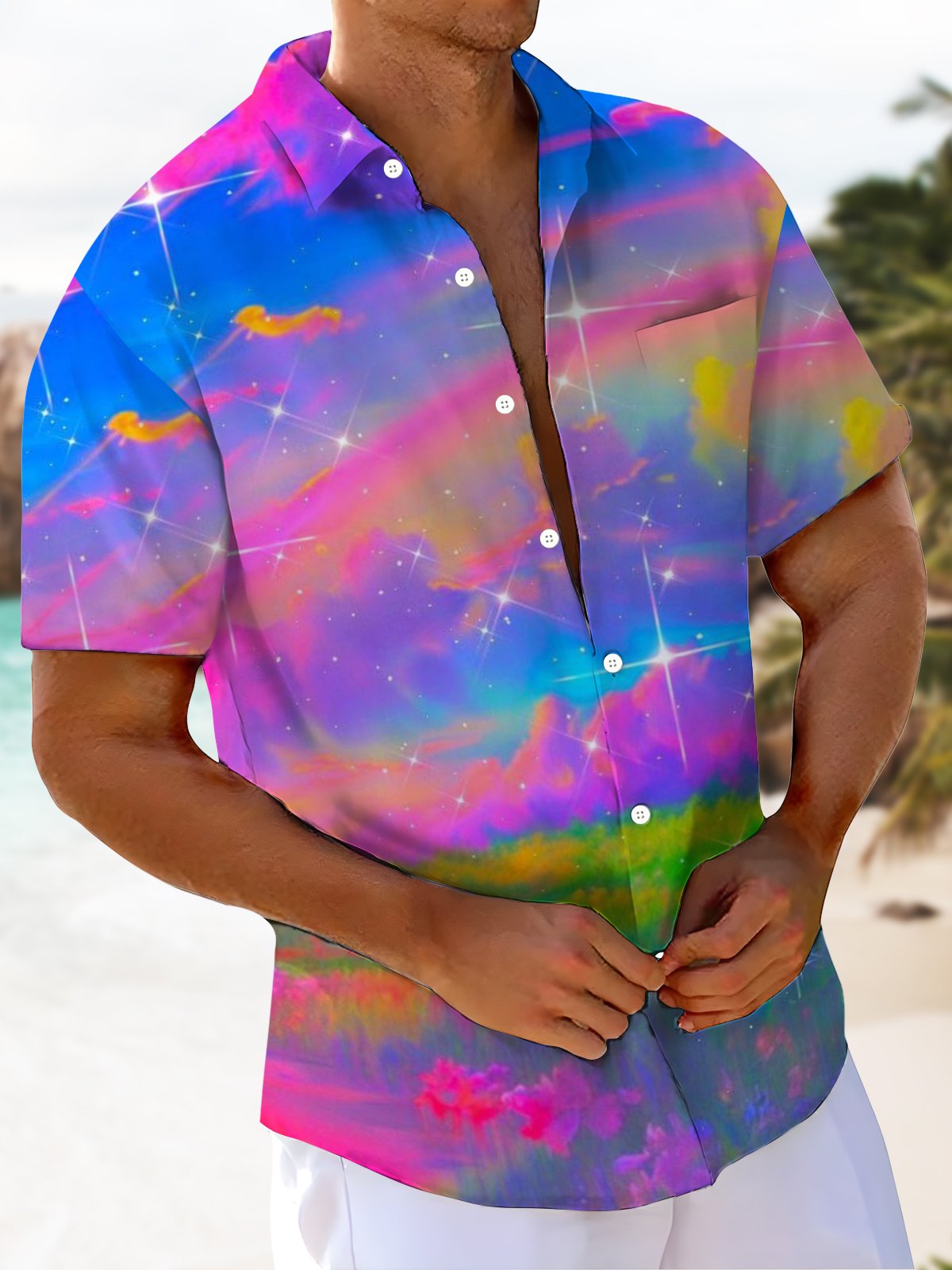 Alohadaddy® Hawaiian Abstract Art Print Pocket Men's Stretch Short Sleeve Shirt Big & Tall