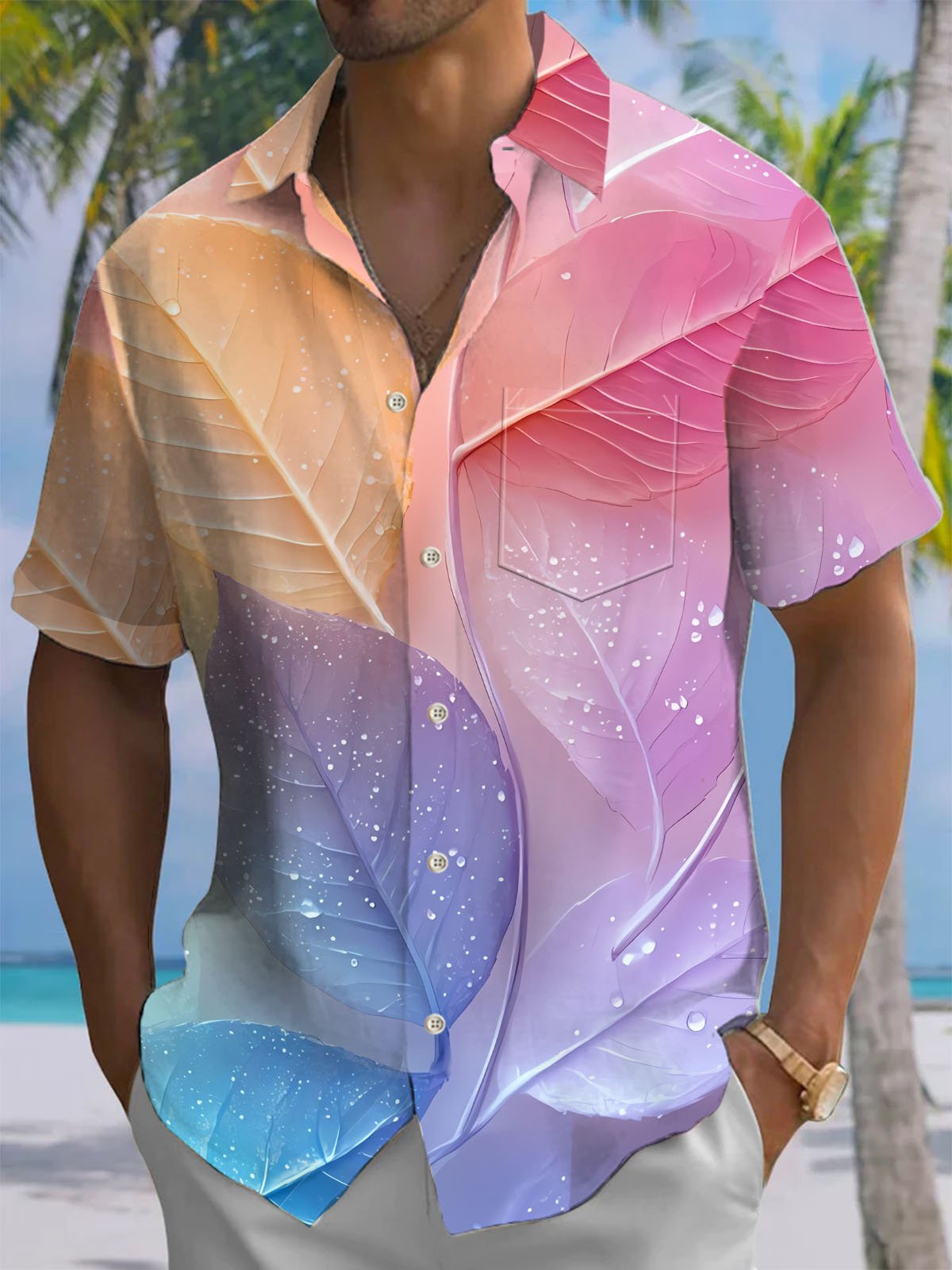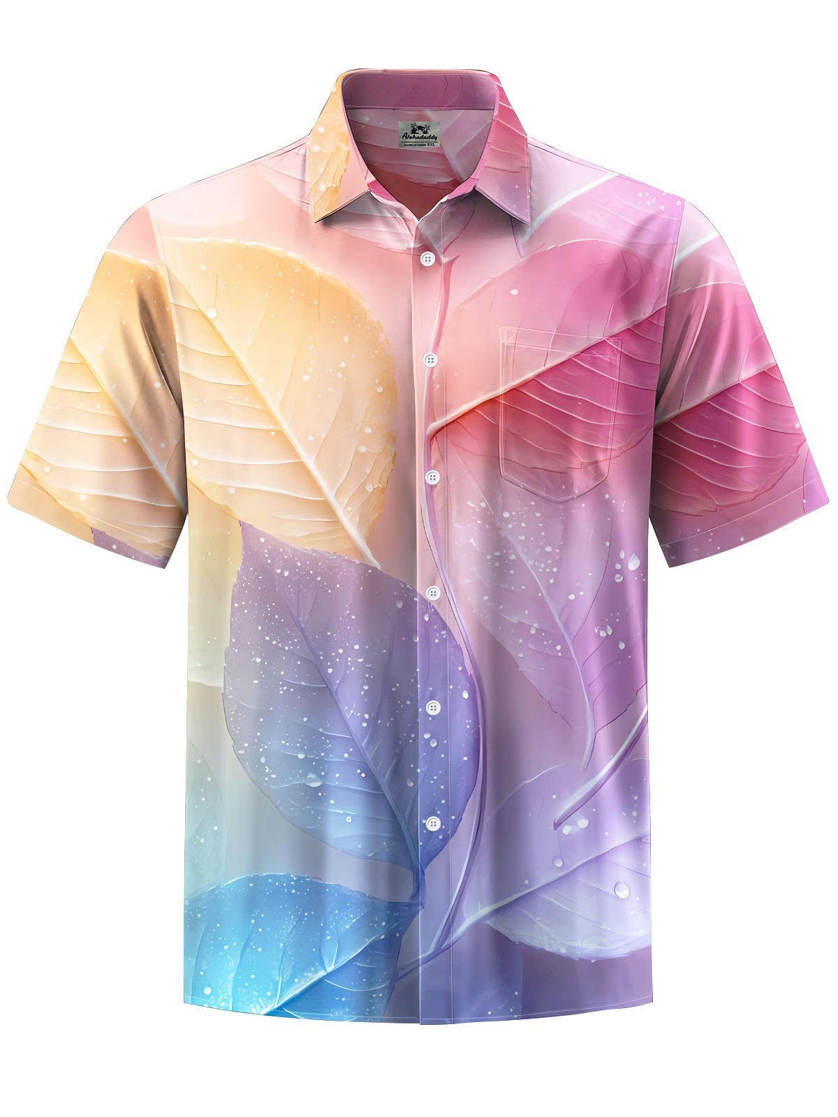 Alohadaddy® Hawaiian Leaf Print Chest Pocket Men's Short Sleeve Shirt Big & Tall