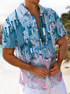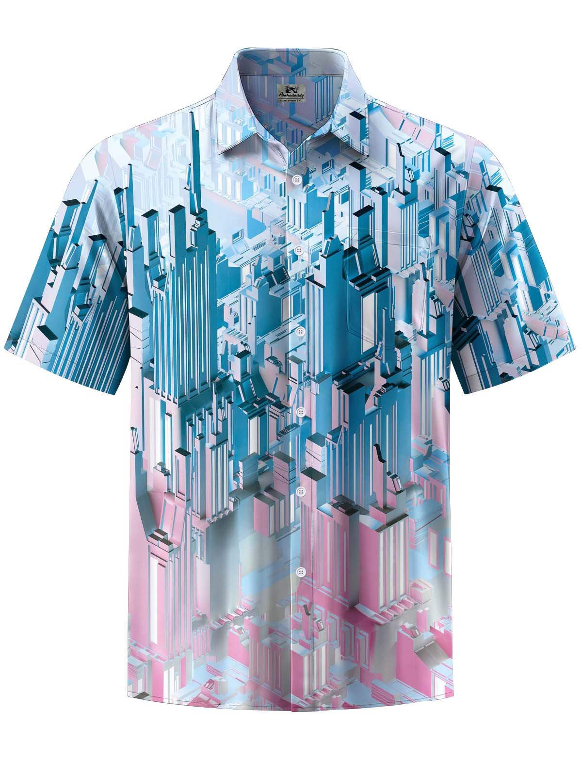 Alohadaddy® Men's Casual High-Rise Stripe Print with Chest Pocket and Stretch Short Sleeve Shirt
