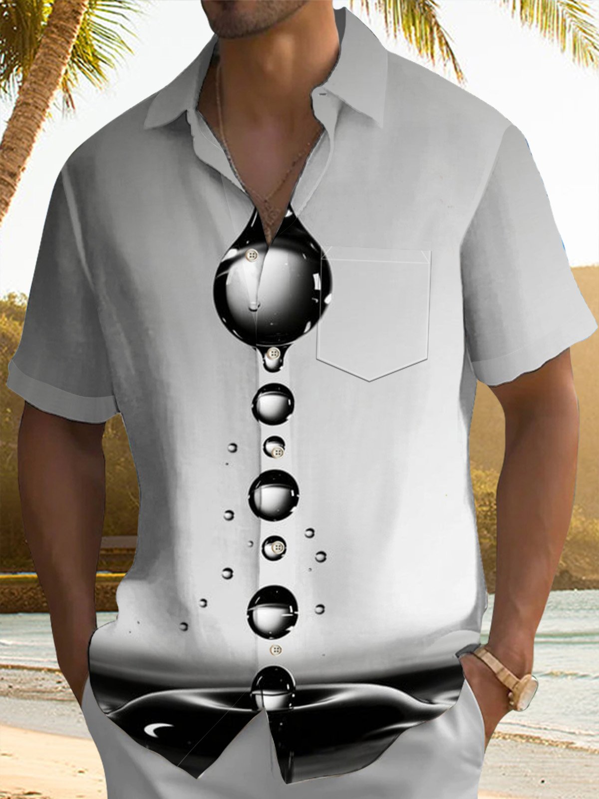Alohadaddy® Men's Casual Teardrop Printed Chest Pocket Stretch Short Sleeve Shirt Big & Tall