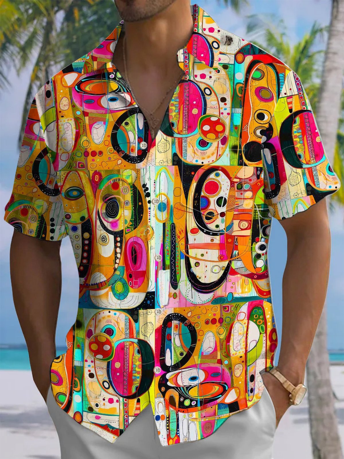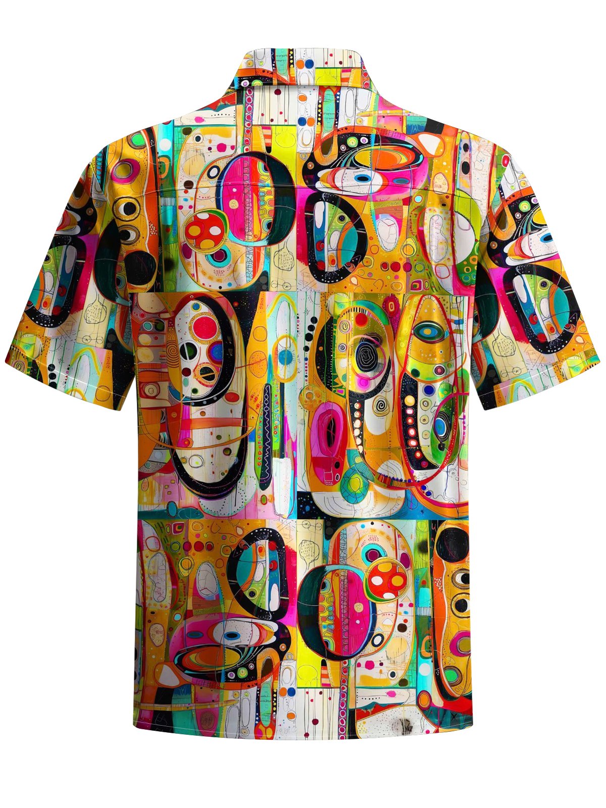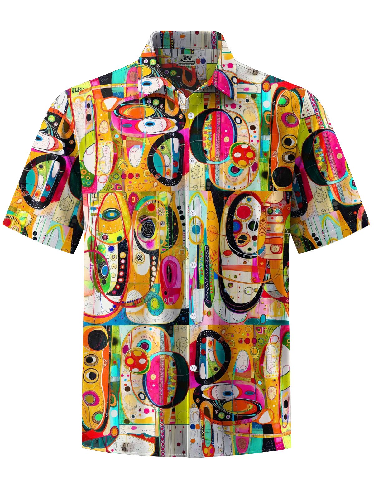 Alohadaddy® Retro Geometric Art Print Chest Pocket Stretch Men's Short Sleeve Shirt Big & Tall