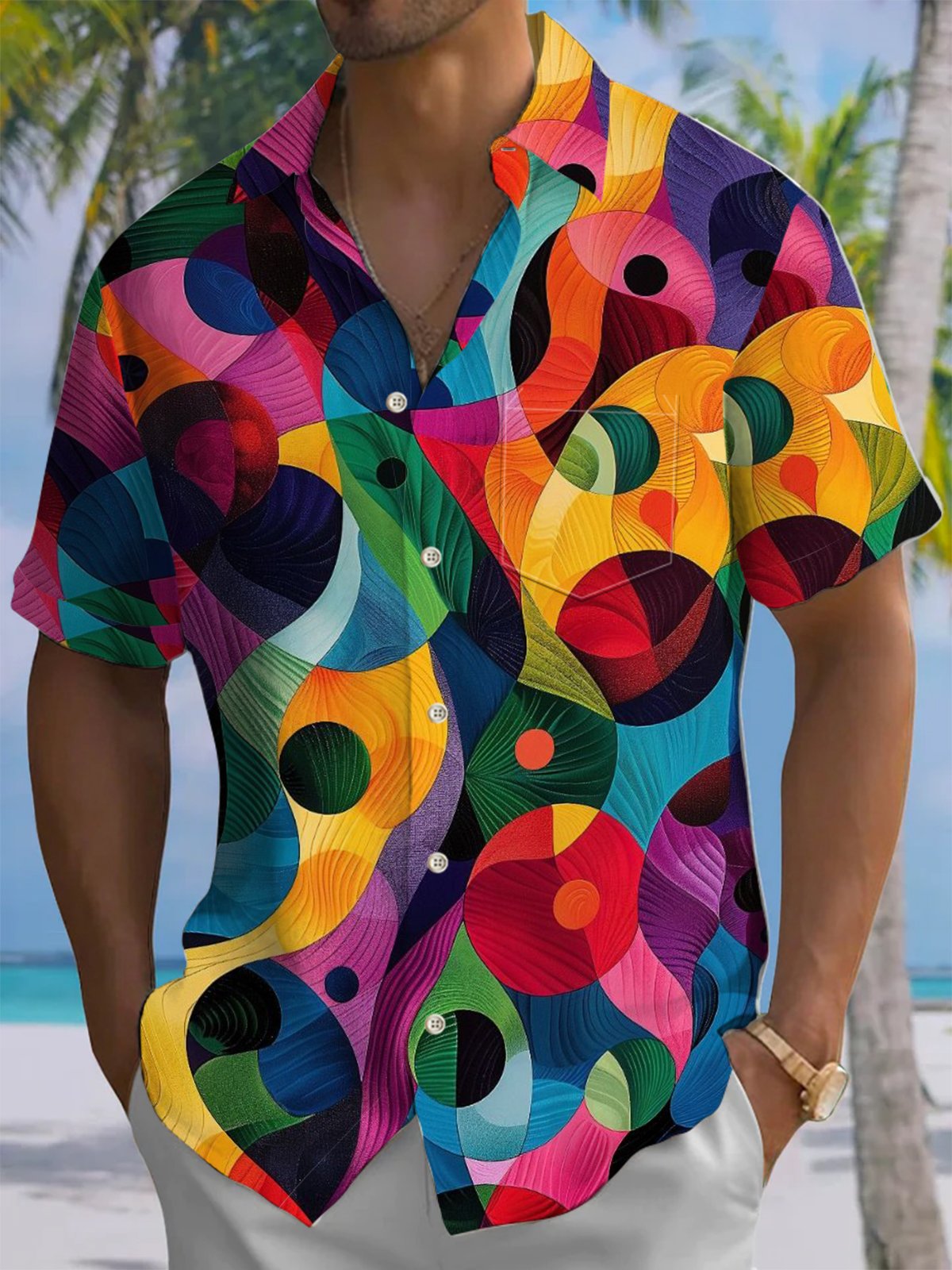 Alohadaddy® Retro Geometric Art Print Moisture Wicking Men's Short Sleeve Shirt Big & Tall