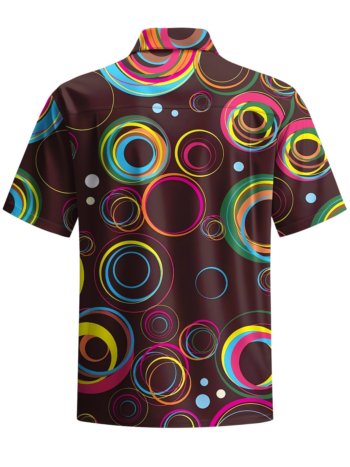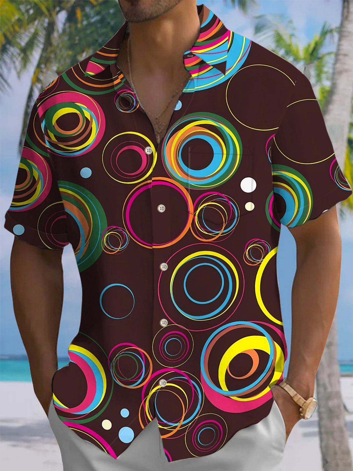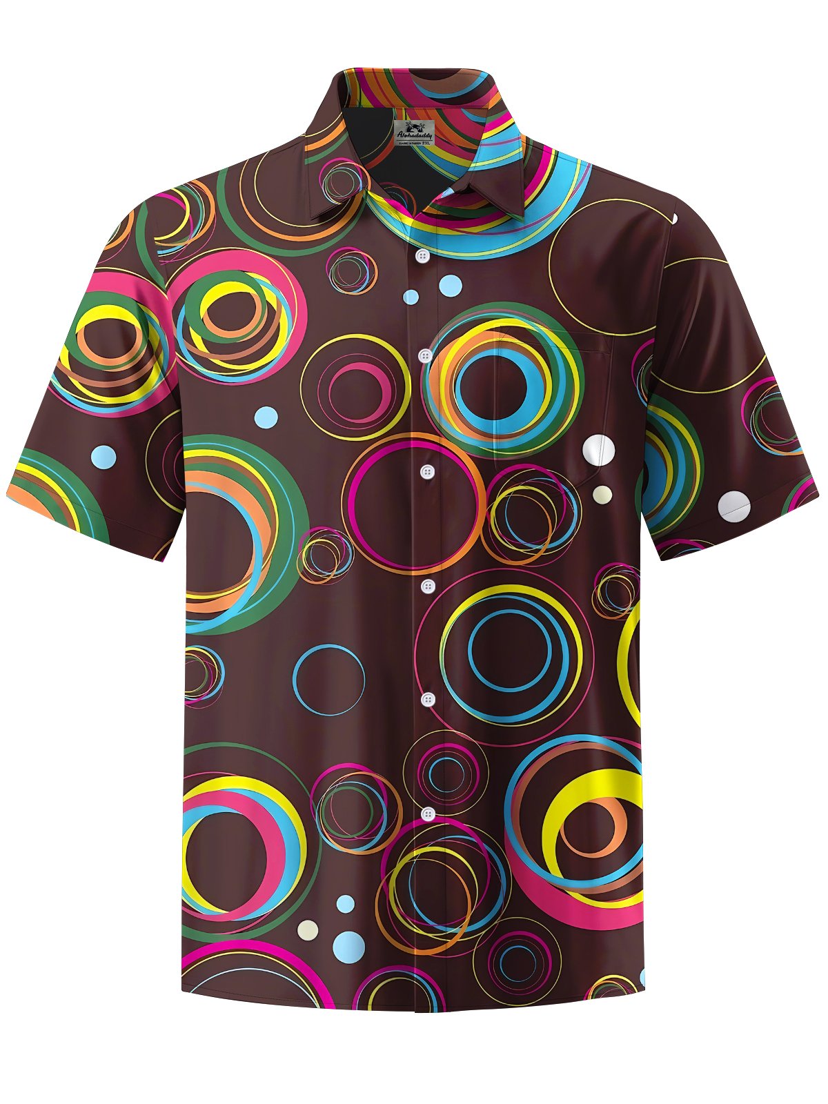 Alohadaddy® Retro Geometric Art Print Pocket Stretch Men's Short Sleeve Shirt Big & Tall