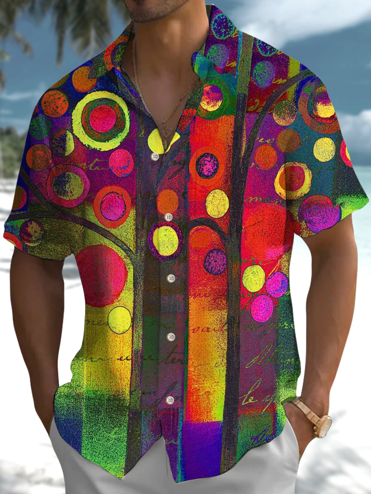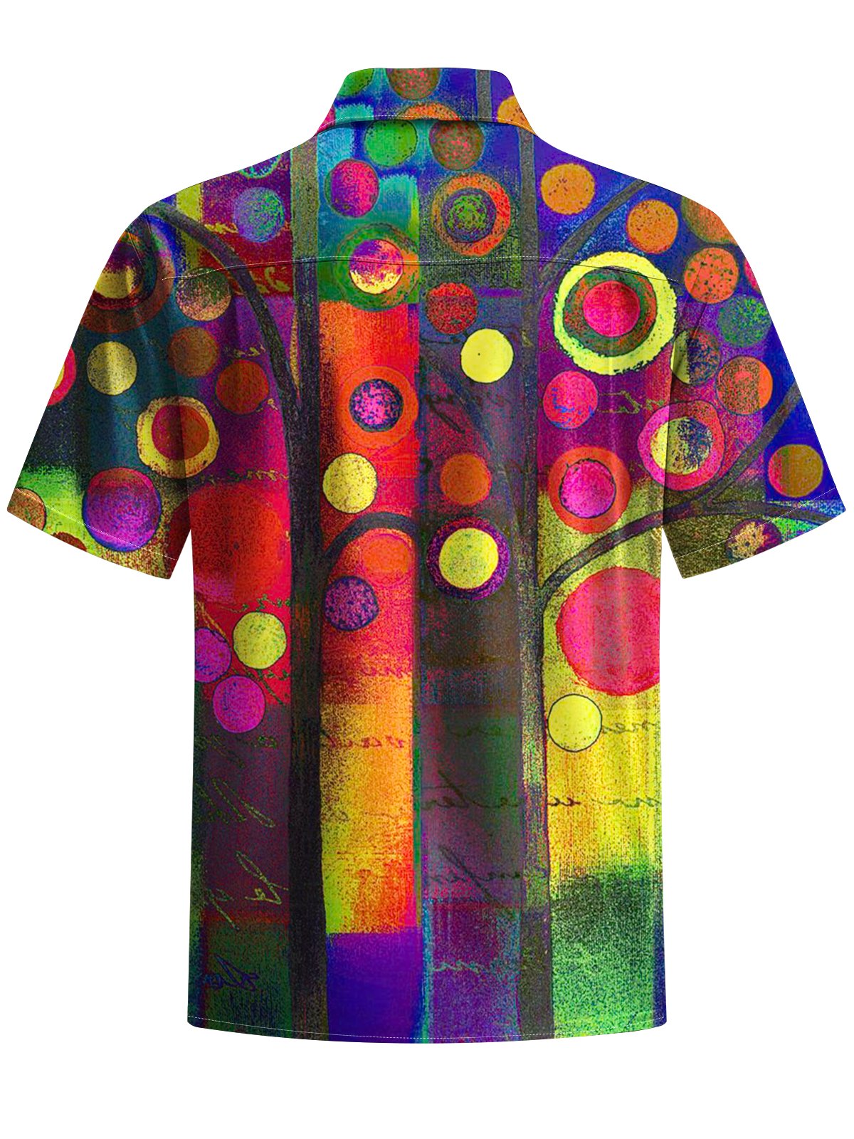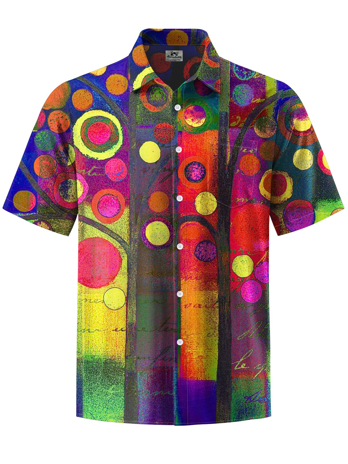 Alohadaddy® Retro Geometric Art Print Pocket Stretch Men's Short Sleeve Shirt Big & Tall