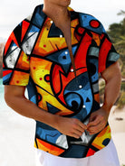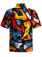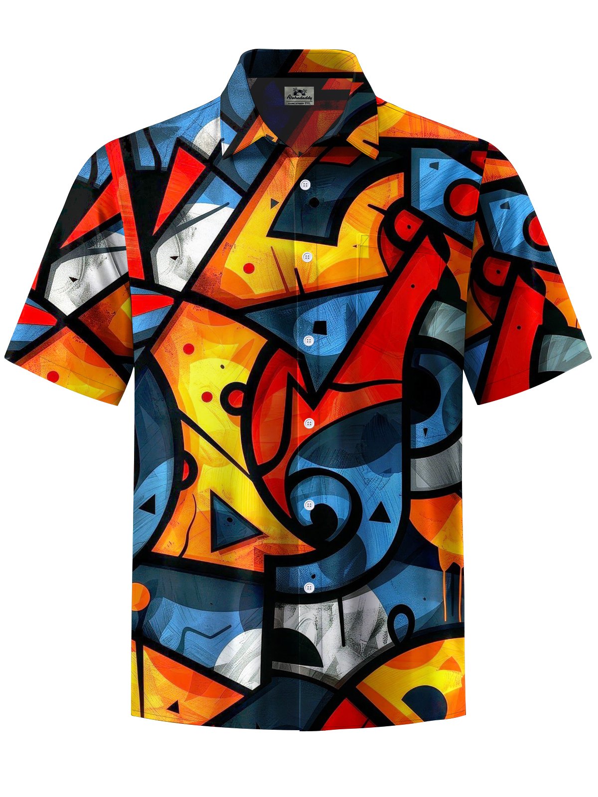 Alohadaddy® Retro Geometric Graffiti Art Print Chest Pocket Men's Stretch Short Sleeve Shirt Big & Tall