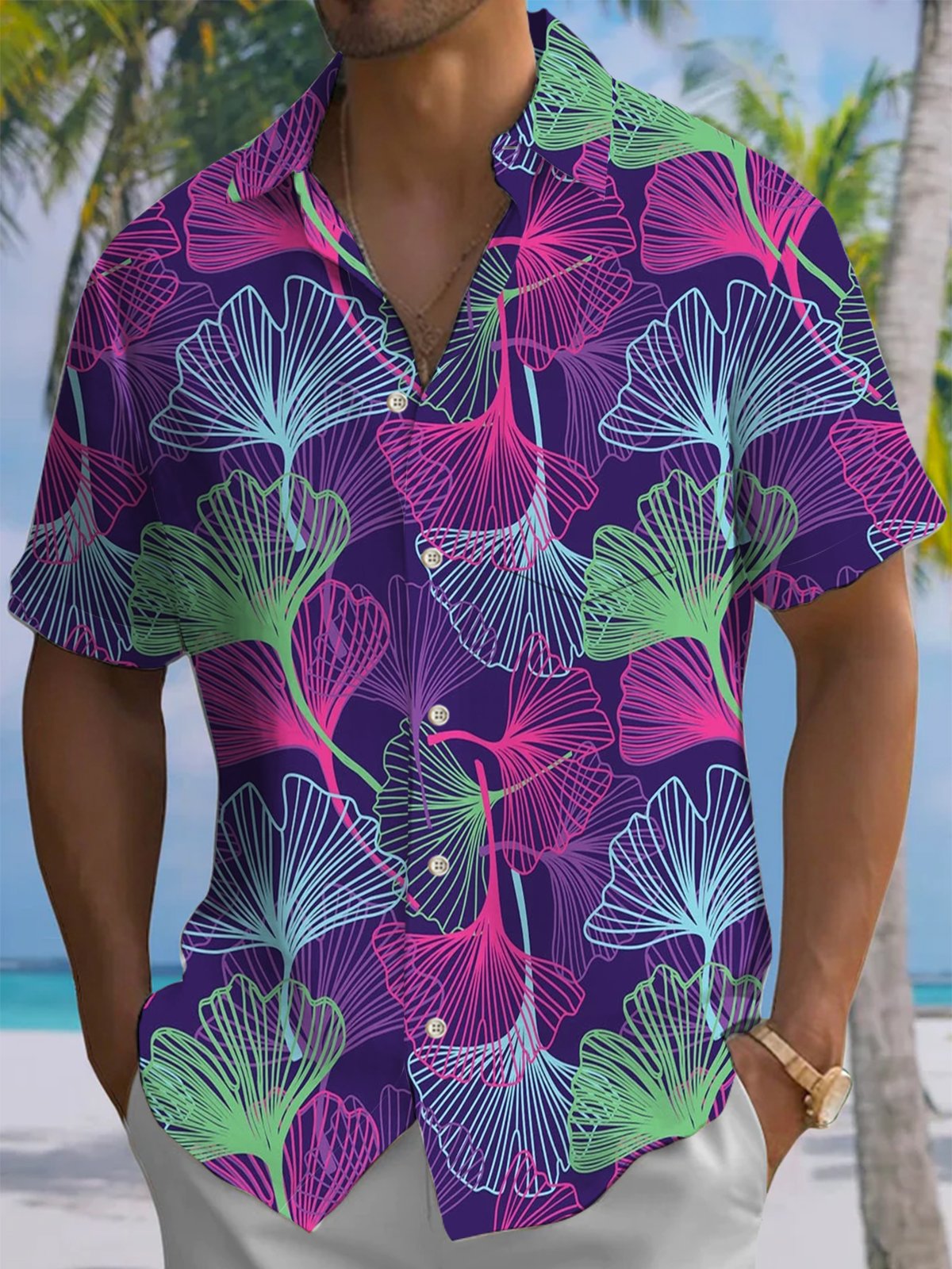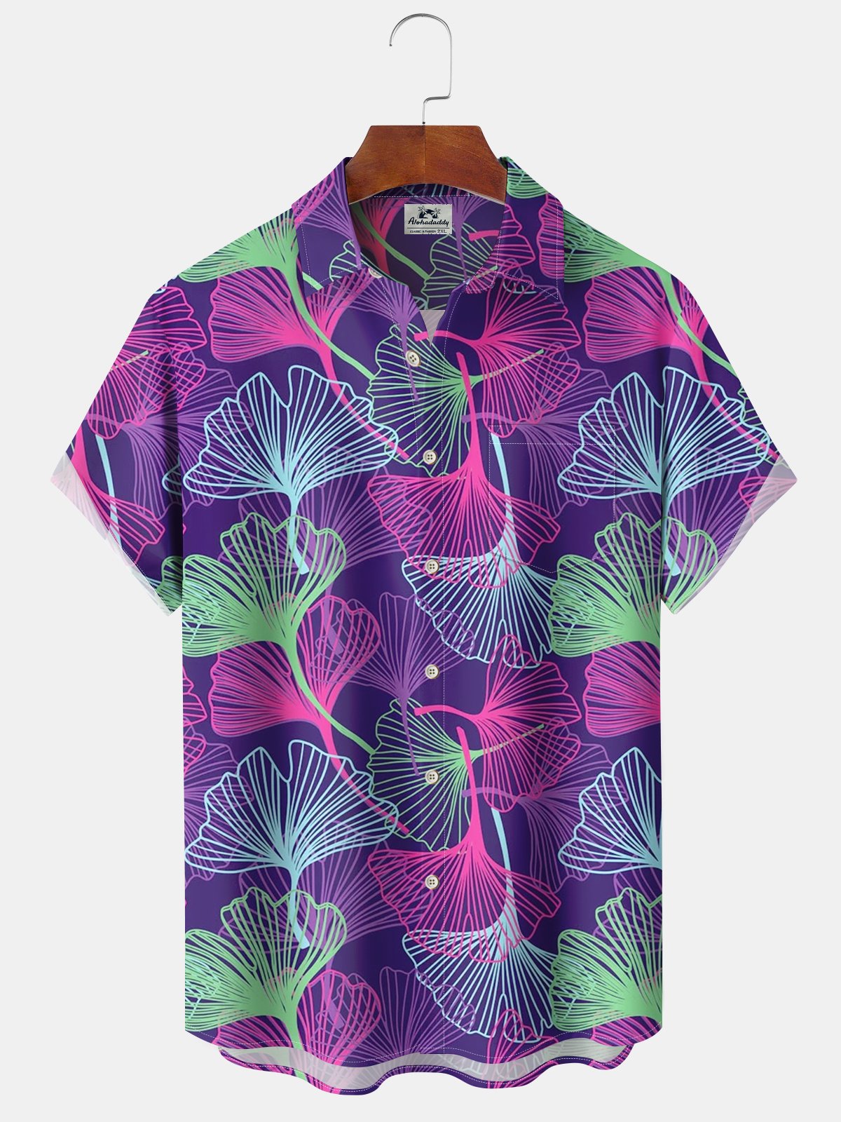 Alohadaddy® Retro Hand-Drawn Graffiti Leaf Print Pocket Stretch Men's Short Sleeve Shirt Big & Tall