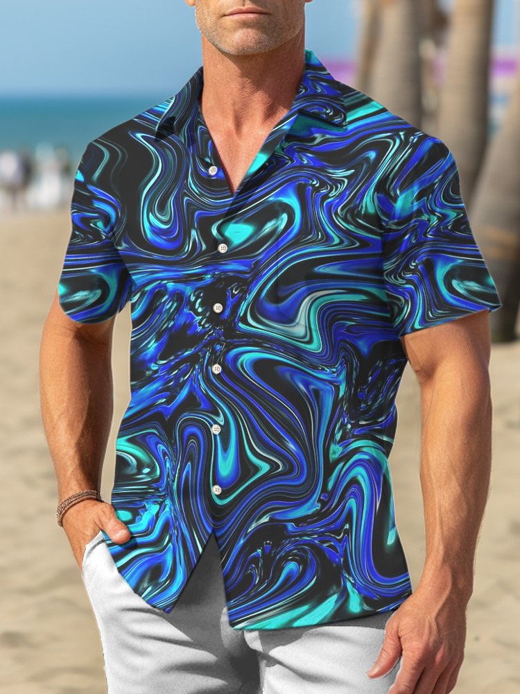 Camisa hawaiana extragrande con bolsillos para hombre con estampado de arte abstracto degradado de Alohadaddy