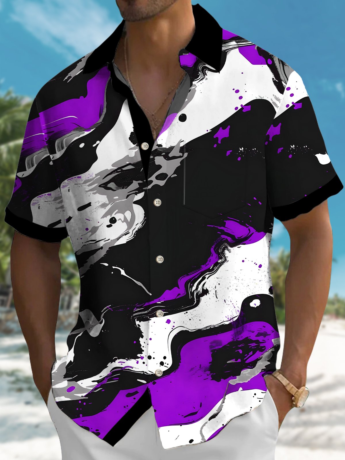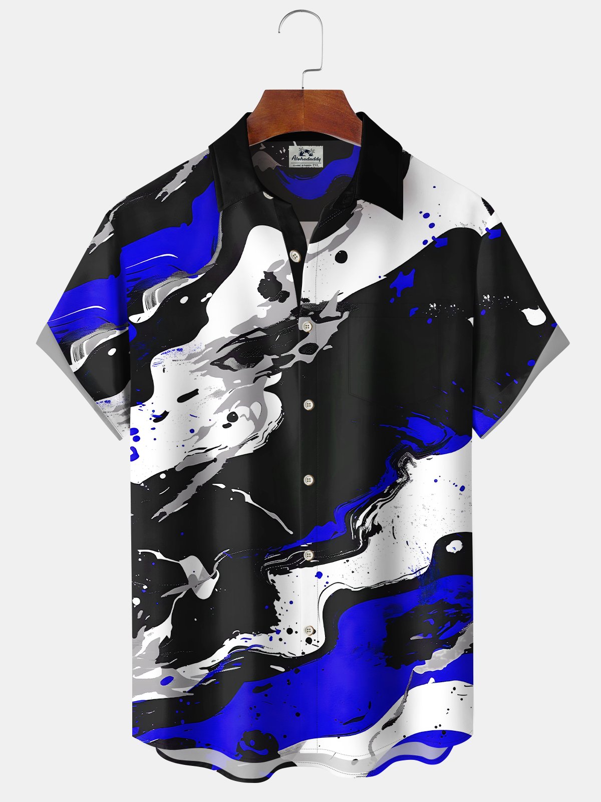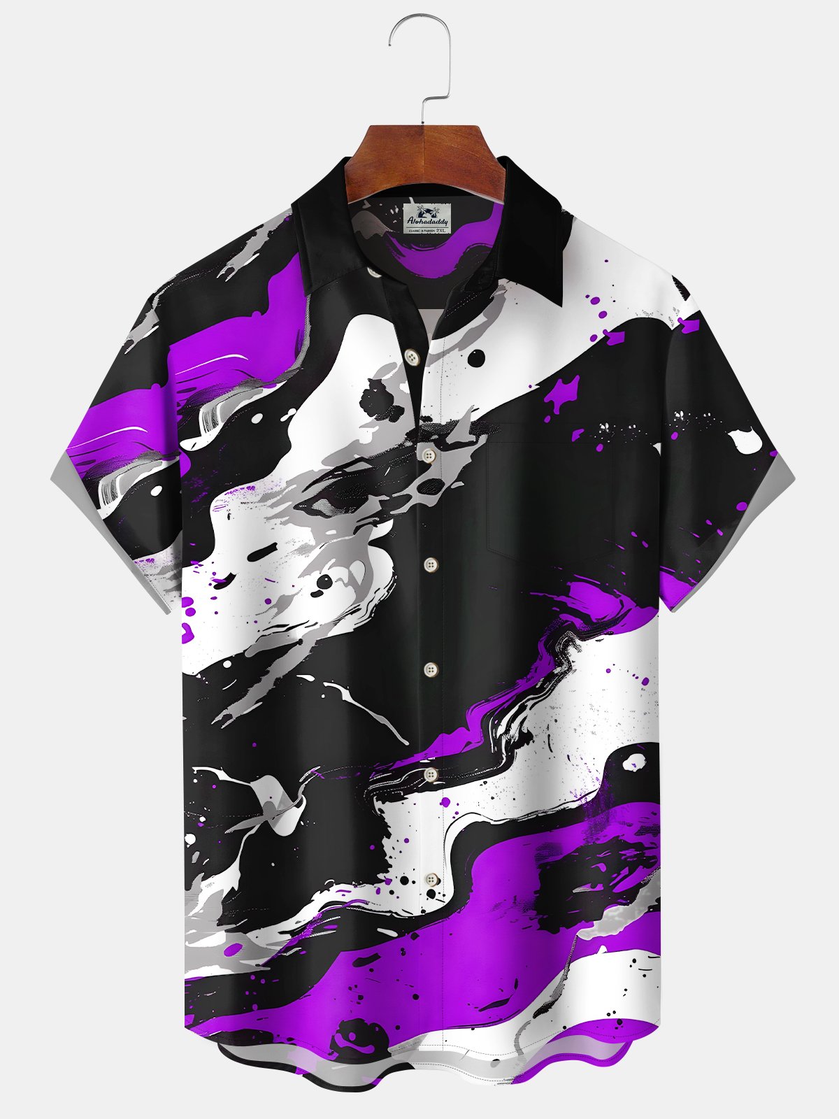 Alohadaddy Retro Gradient Abstract Art Print Men's Button Pocket Short Sleeve Shirt
