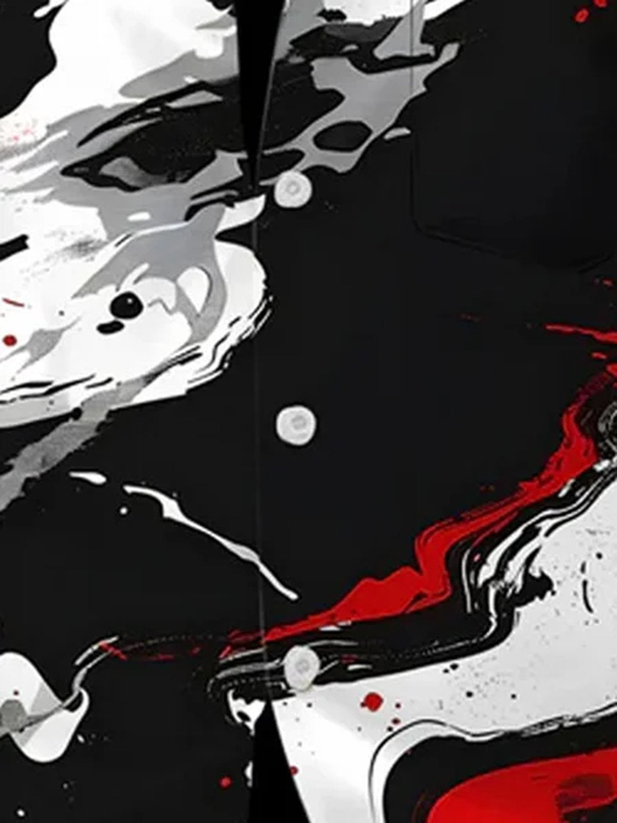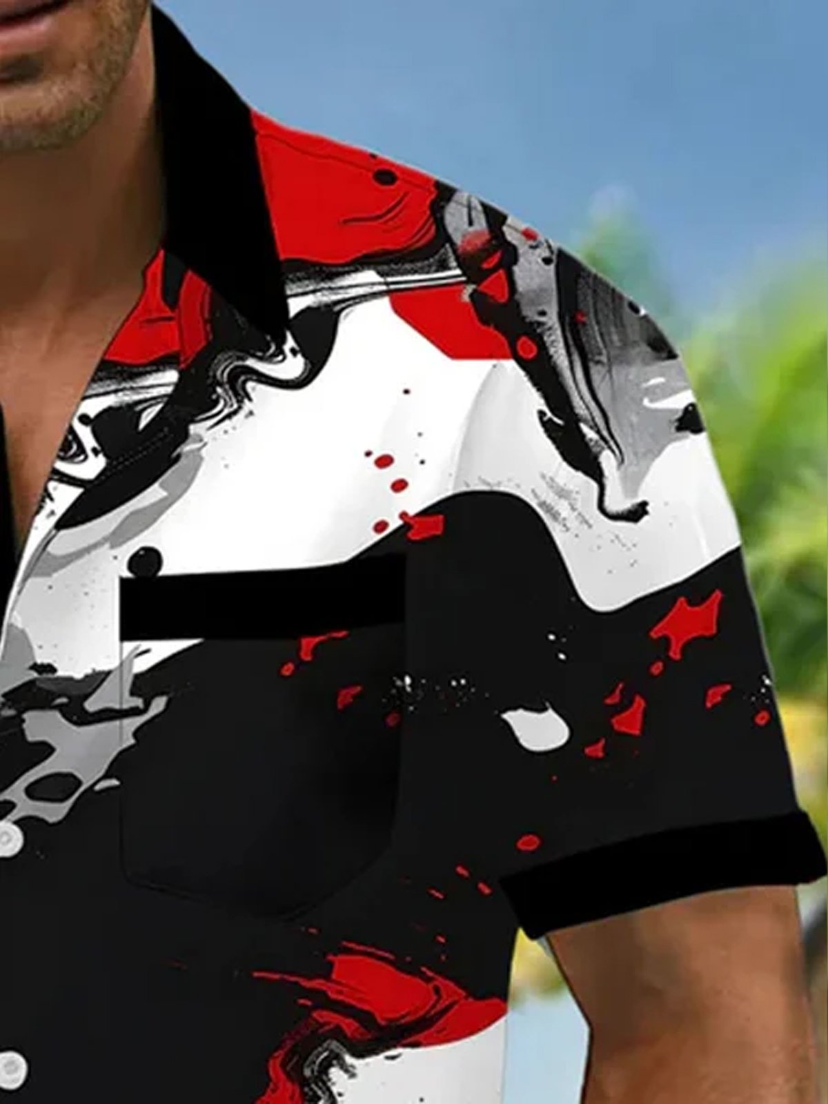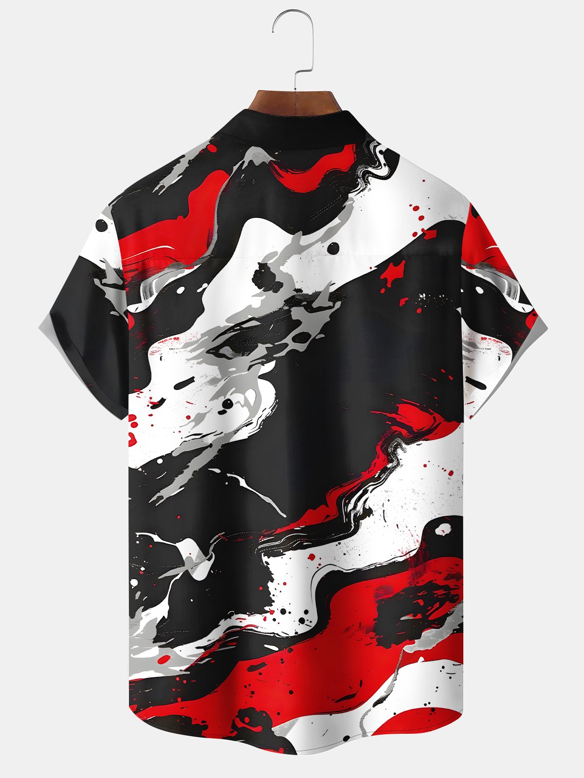 Alohadaddy Retro Gradient Abstract Art Print Men's Button Pocket Short Sleeve Shirt