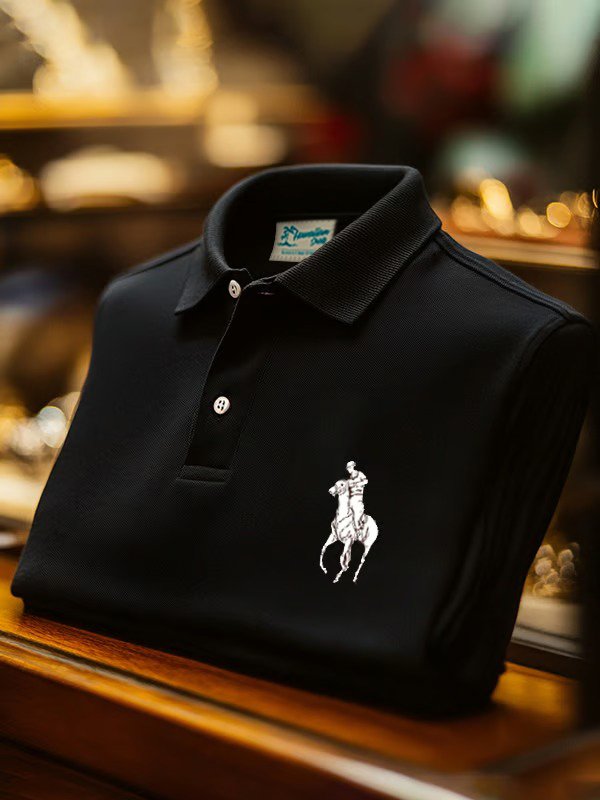 Alohadaddy® Business Solid Horse Racing Logo Print Men's Lapel Button-Down Short Sleeve Polo Shirt Big & Tall