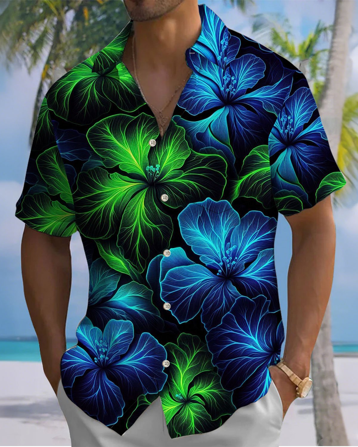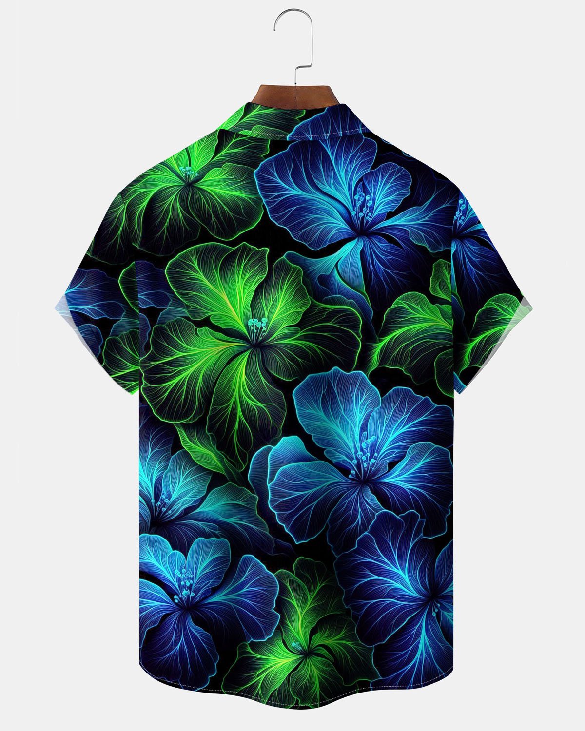 Alohadaddy® Casual Floral Print Art Pocket Button Cardigan Men's Short Sleeve Shirt