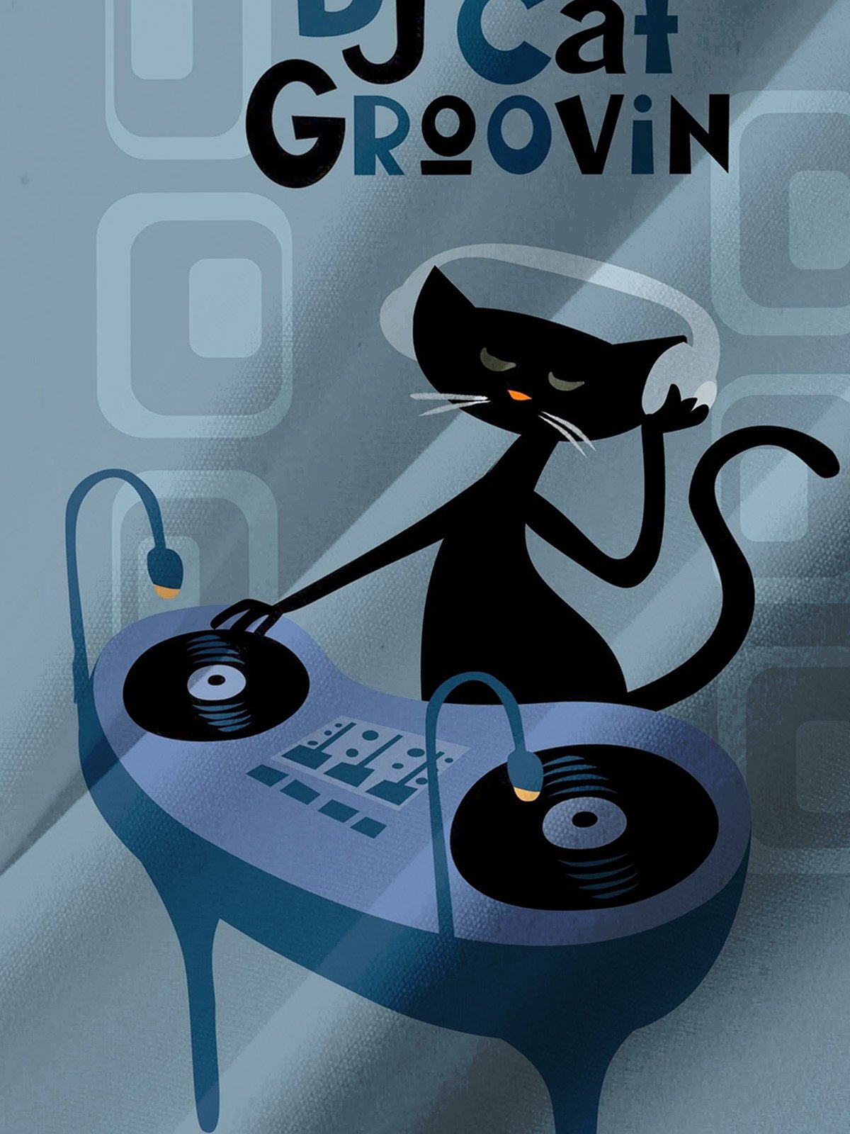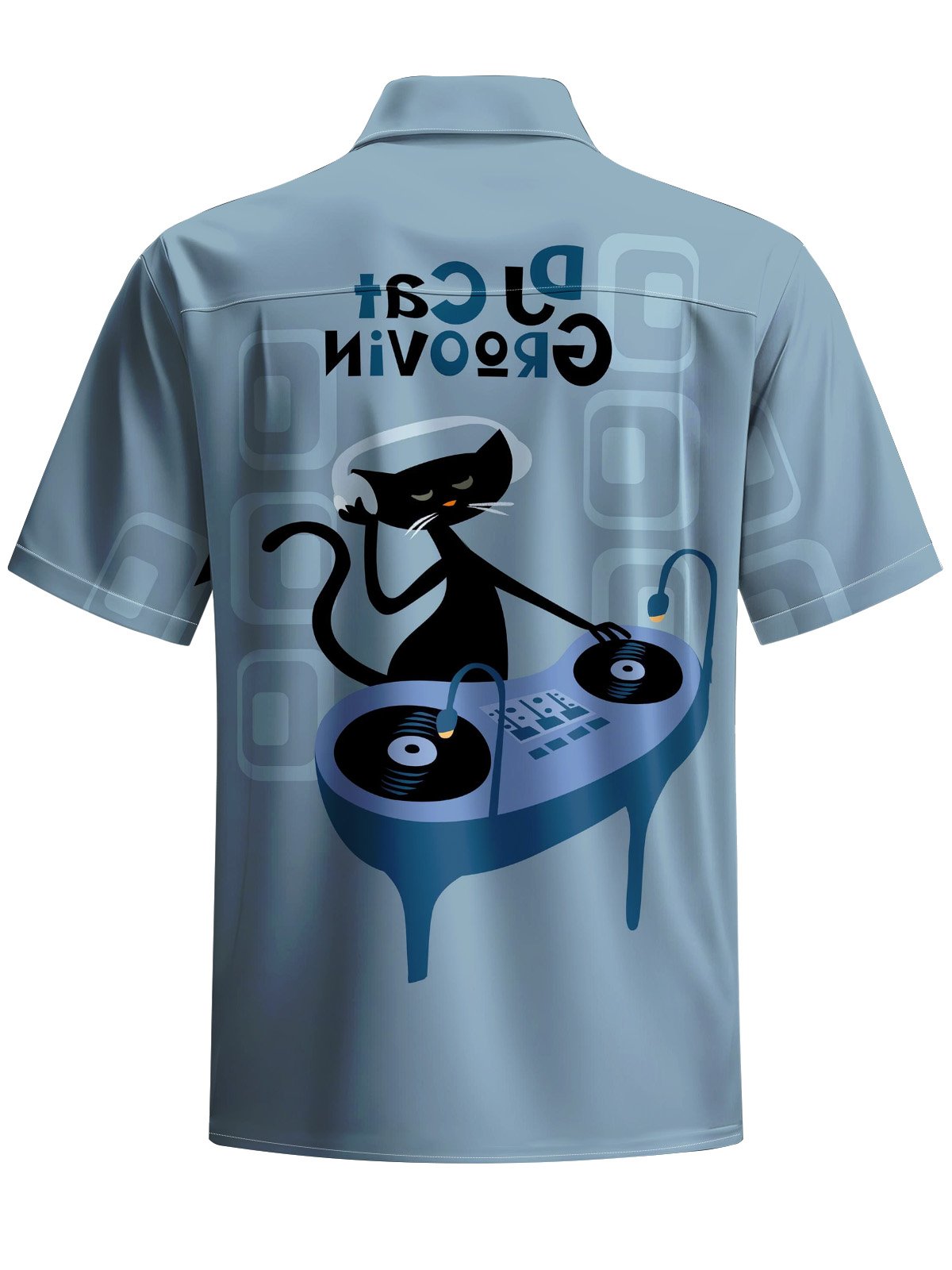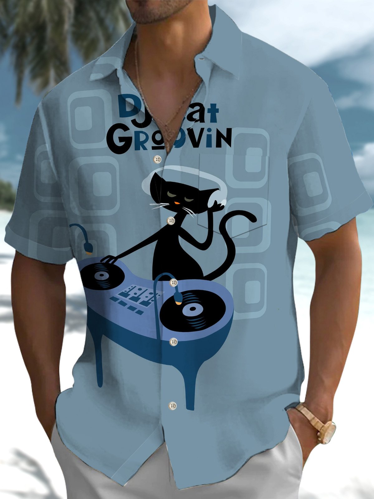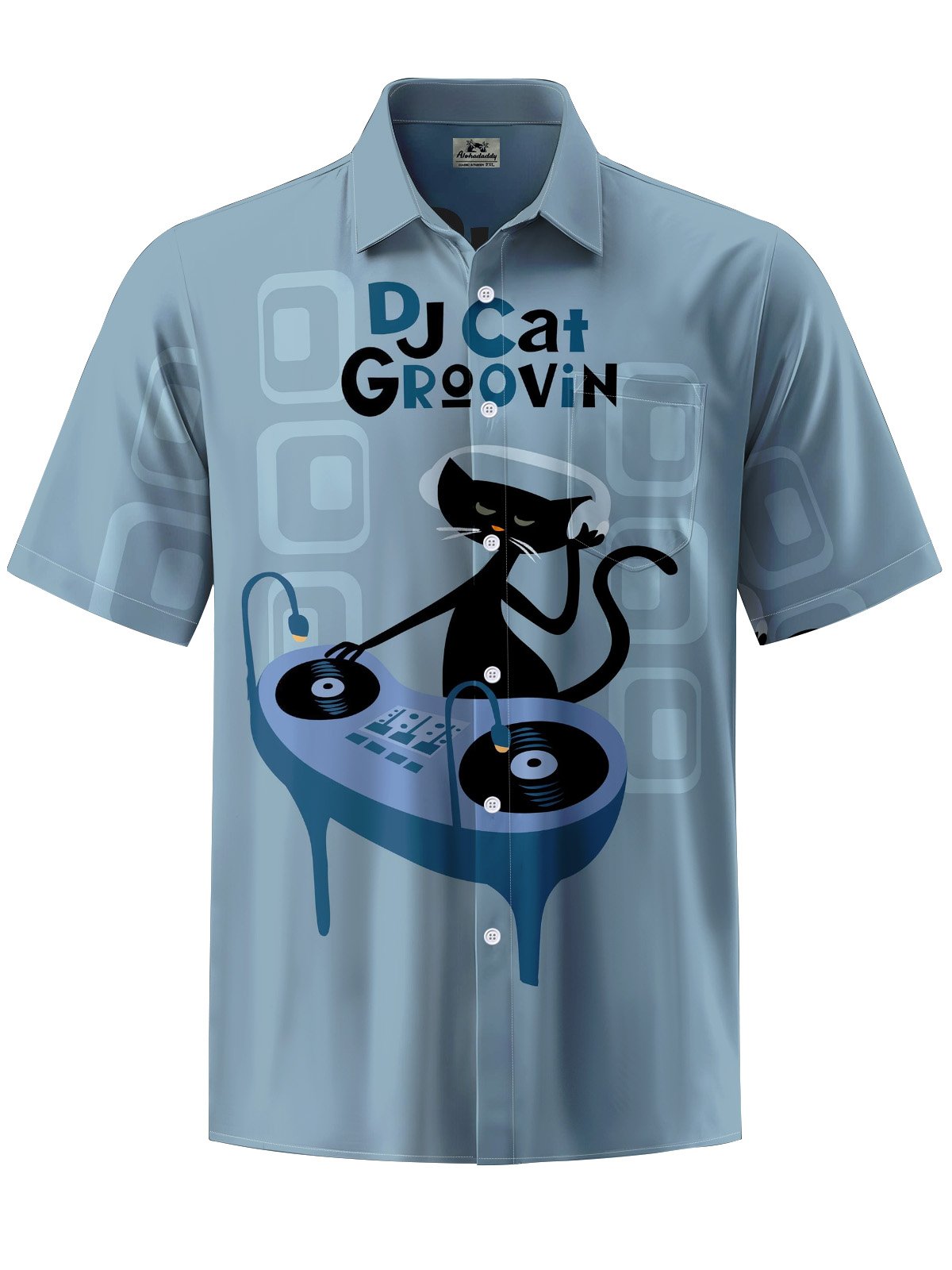 Alohadaddy® Casual Geometric DJ Cat Art Print Pocket Stretch Men's Short Sleeve Shirt Big & Tall