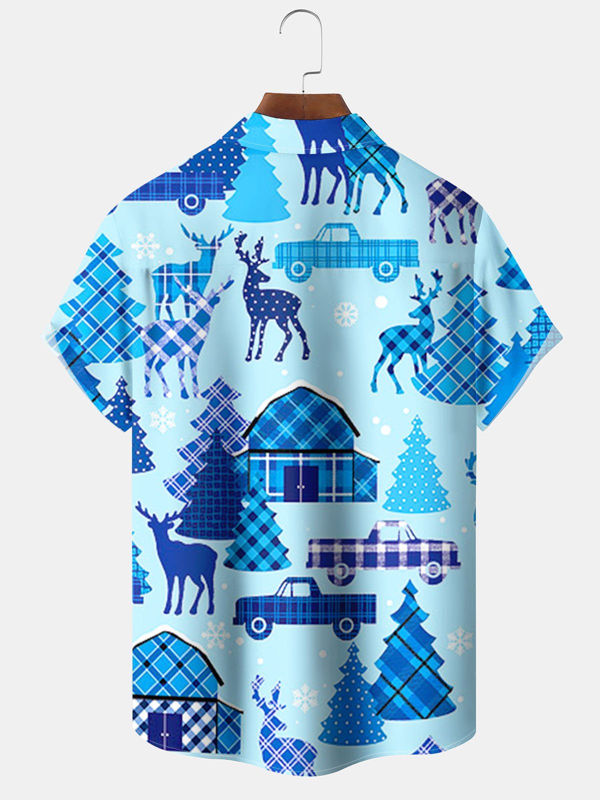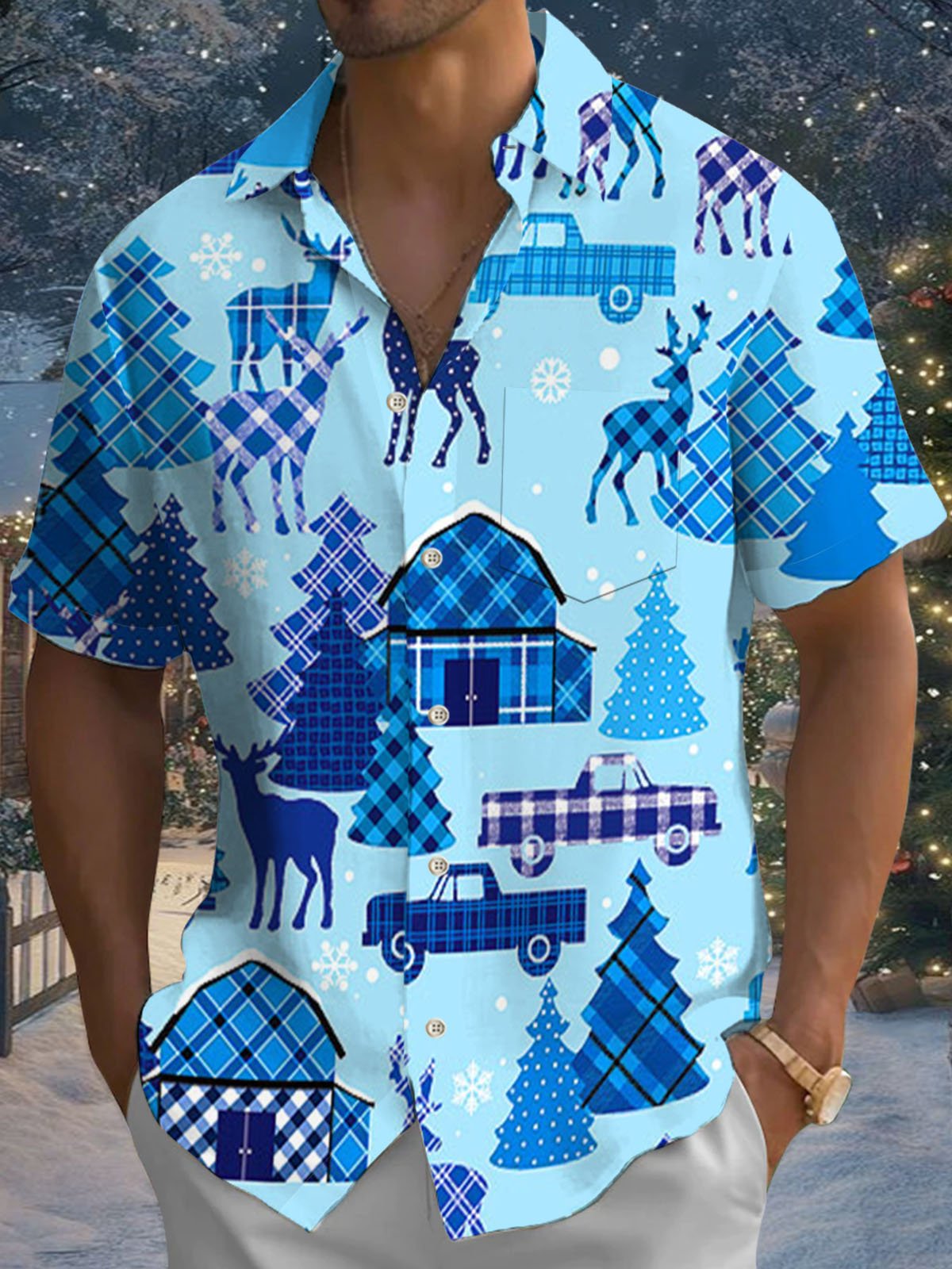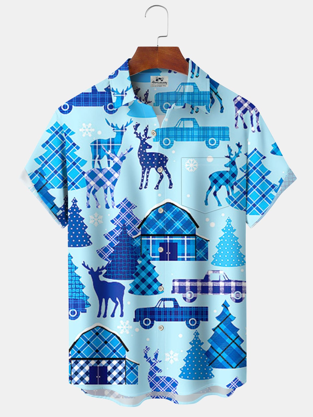 Alohadaddy® Christmas Geometric Fir Print Pocket Elastic Button Men's Short Sleeve Shirt Big & Tall