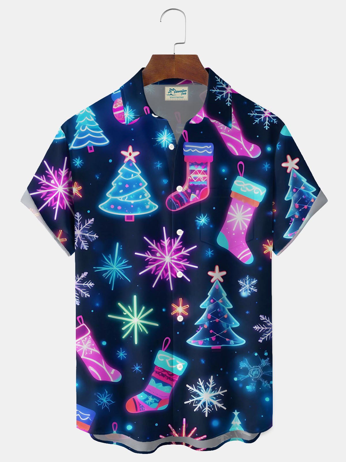 Alohadaddy® Christmas Gradient Print Men's Button Pocket Short Sleeve Shirt Big & Tall