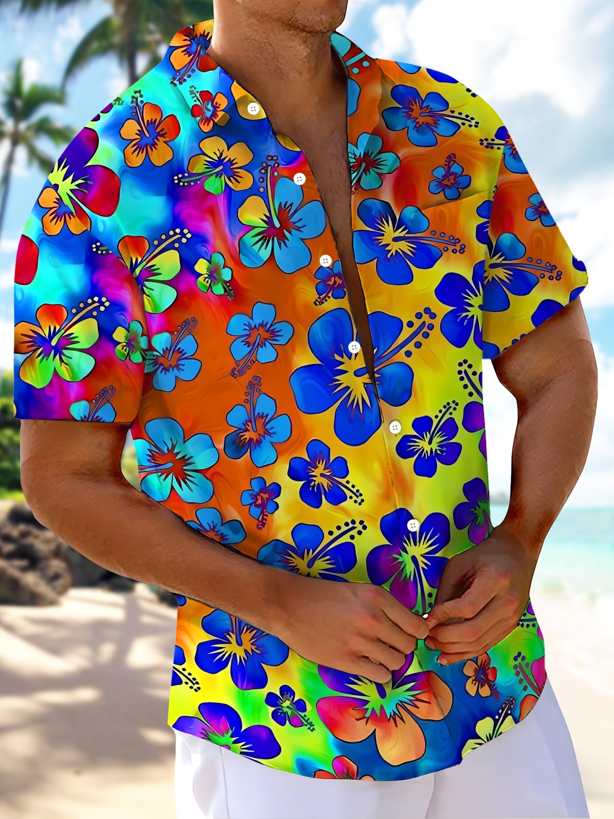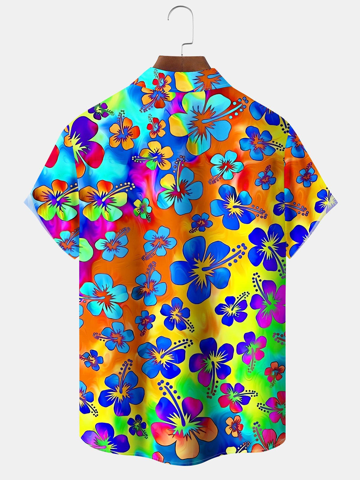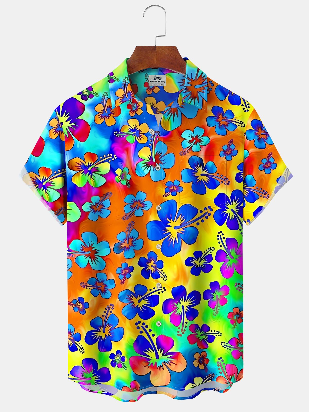 Alohadaddy® Hawaiian Floral Ombre Pocket Button Stretch Men's Short Sleeve Shirt Big & Tall