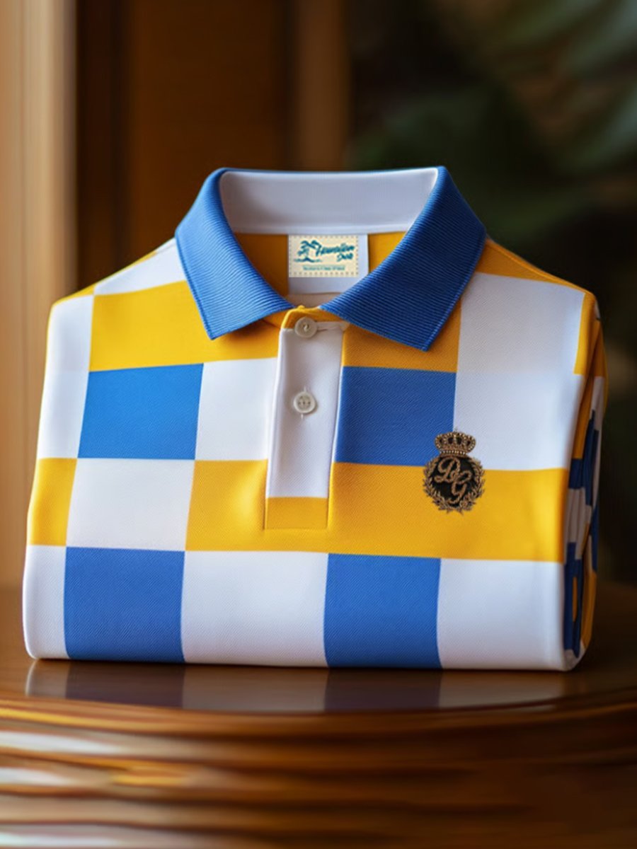 Alohadaddy® Men's Classic Contrast Colorblock Logo Business Button-Down Polo Shirt Big & Tall