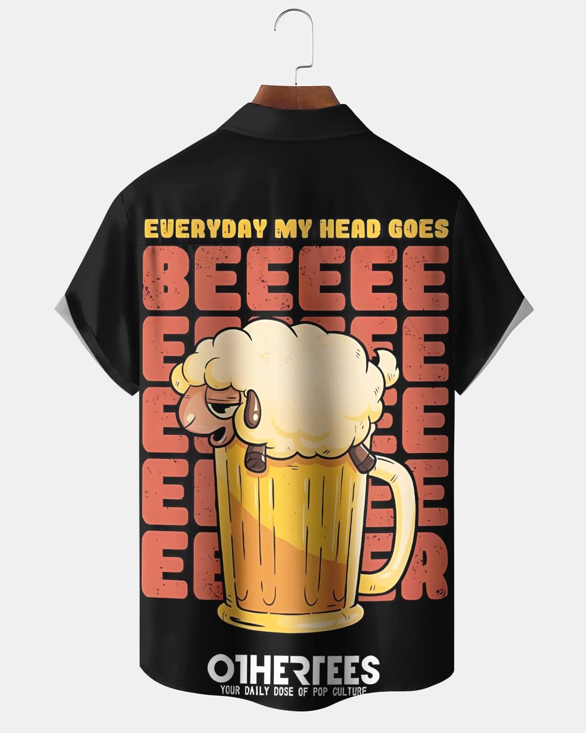Alohadaddy® Retro Letter Beer Print Art Pockets with Elastic Buttons Men's Short Sleeve Shirt Big & Tall