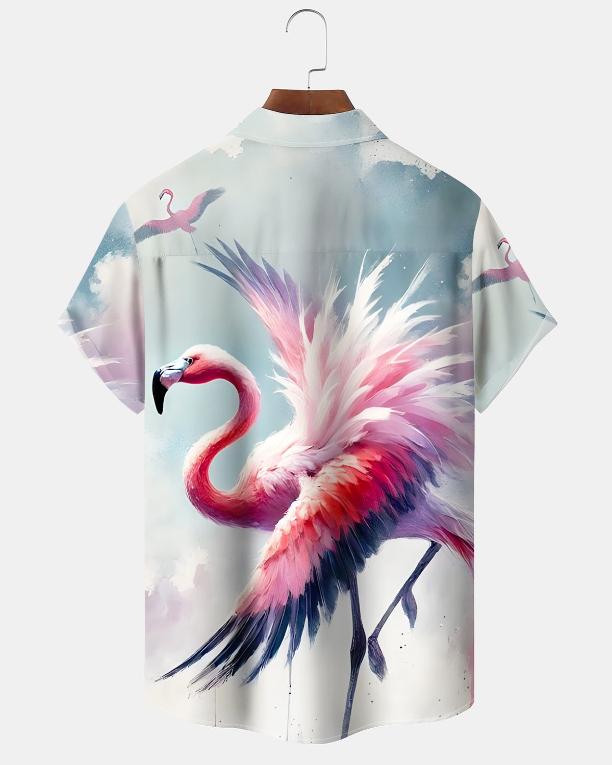 Alohadaddy® Hawaiian Flamingo Tropical Watercolor Print Button-Down Shirt