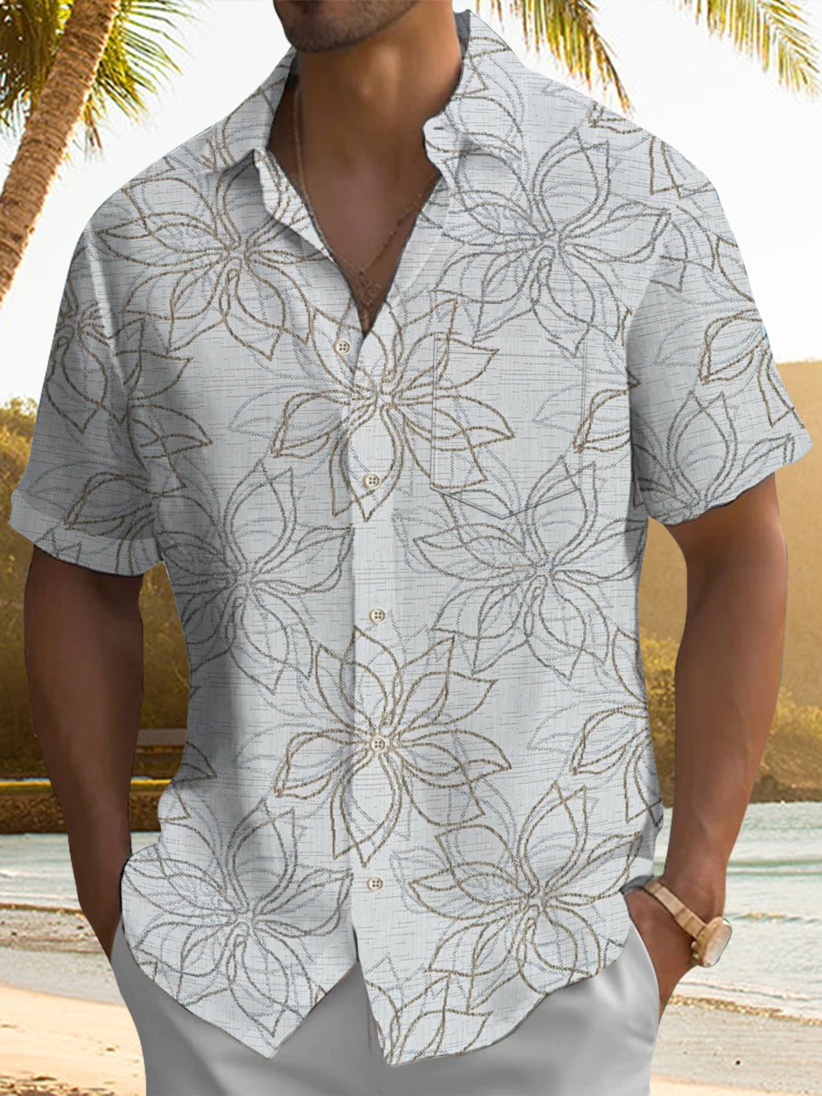 Alohadaddy® Casual Floral Art Print Chest Pocket Men's Short Sleeve Shirt Big & Tall