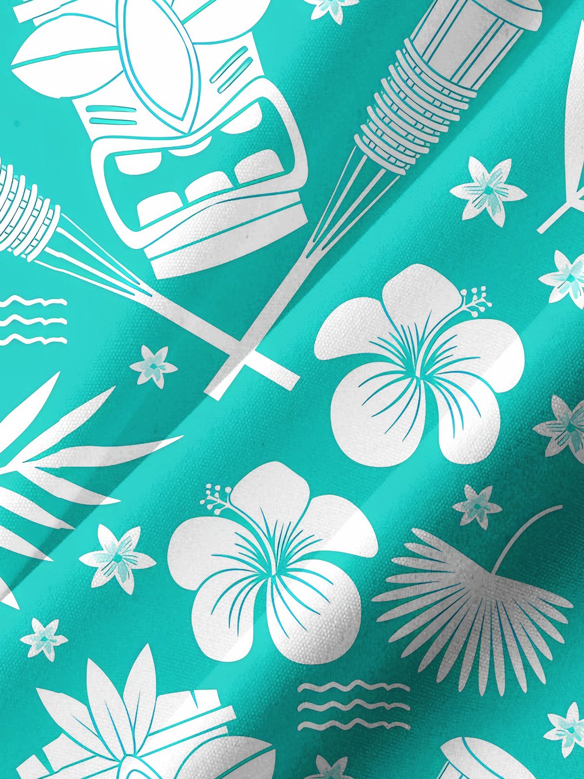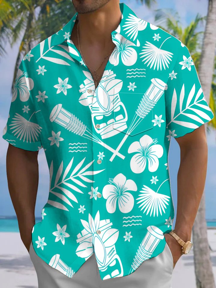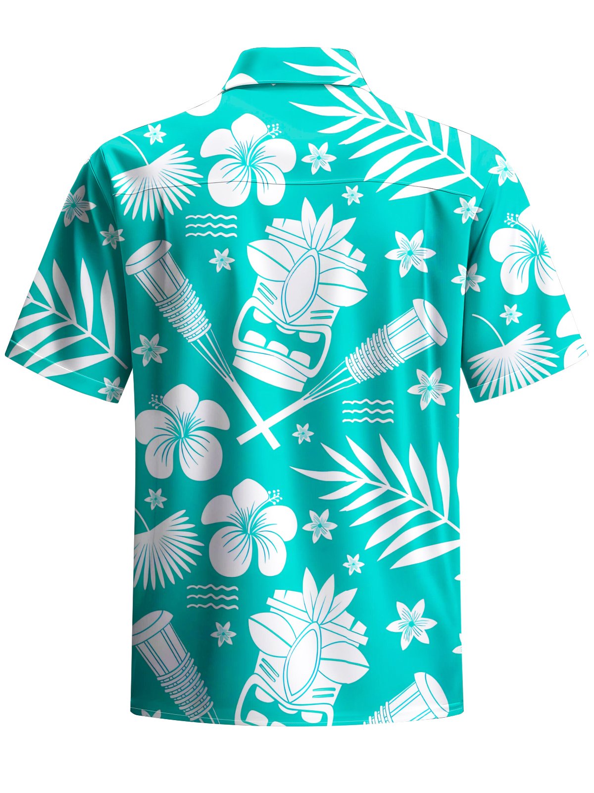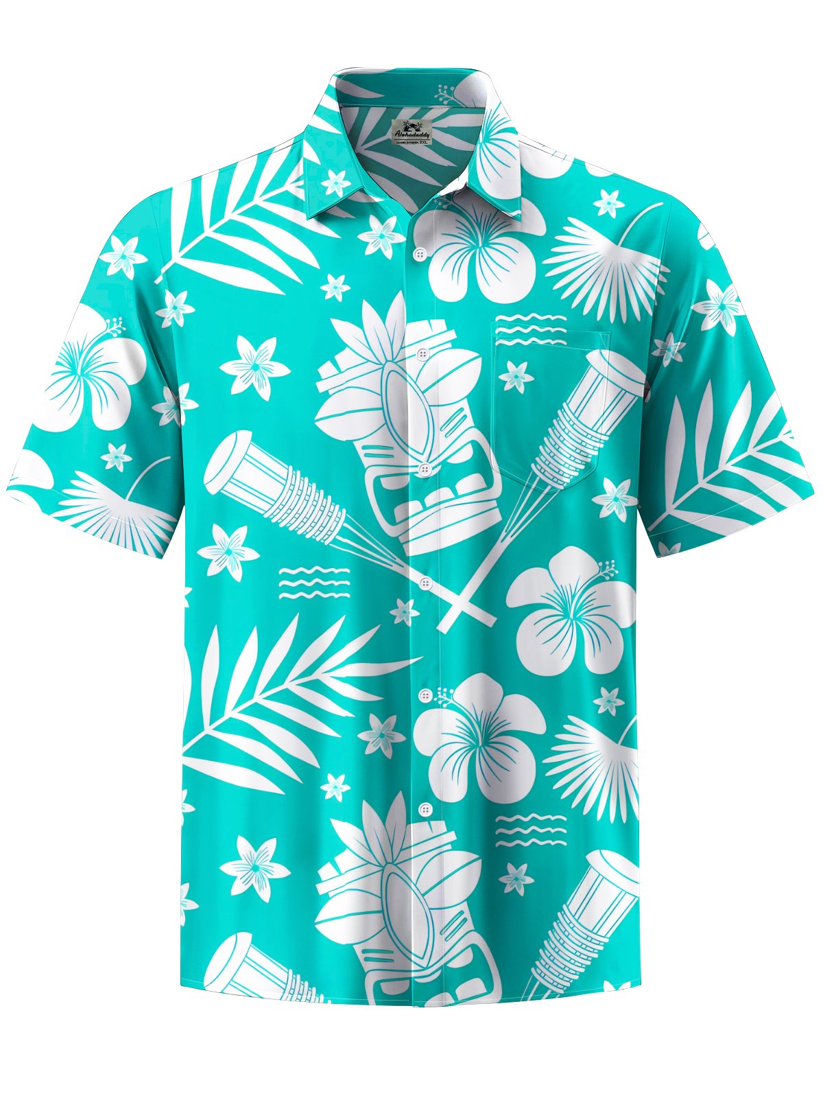 Alohadaddy® Casual Hawaiian Tiki Art Print Chest Pocket Men's Short Sleeve Shirt Big & Tall